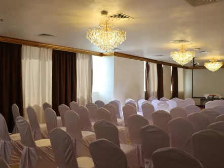 تُعد قاعة الفعاليات في فندق V الفجيرة واحدة من أبرز القاعات المتخصصة في استضافة حفلات الزفاف، المناسبات الخاصة، والمؤتمرات، بقدرة استيعابية تصل إلى 200 ضيف. تجمع القاعة بين التصميم العصري والتجهيزات المتطورة، مما يجعلها خيارًا مثاليًا للمناسبات الكبيرة والرسمية.