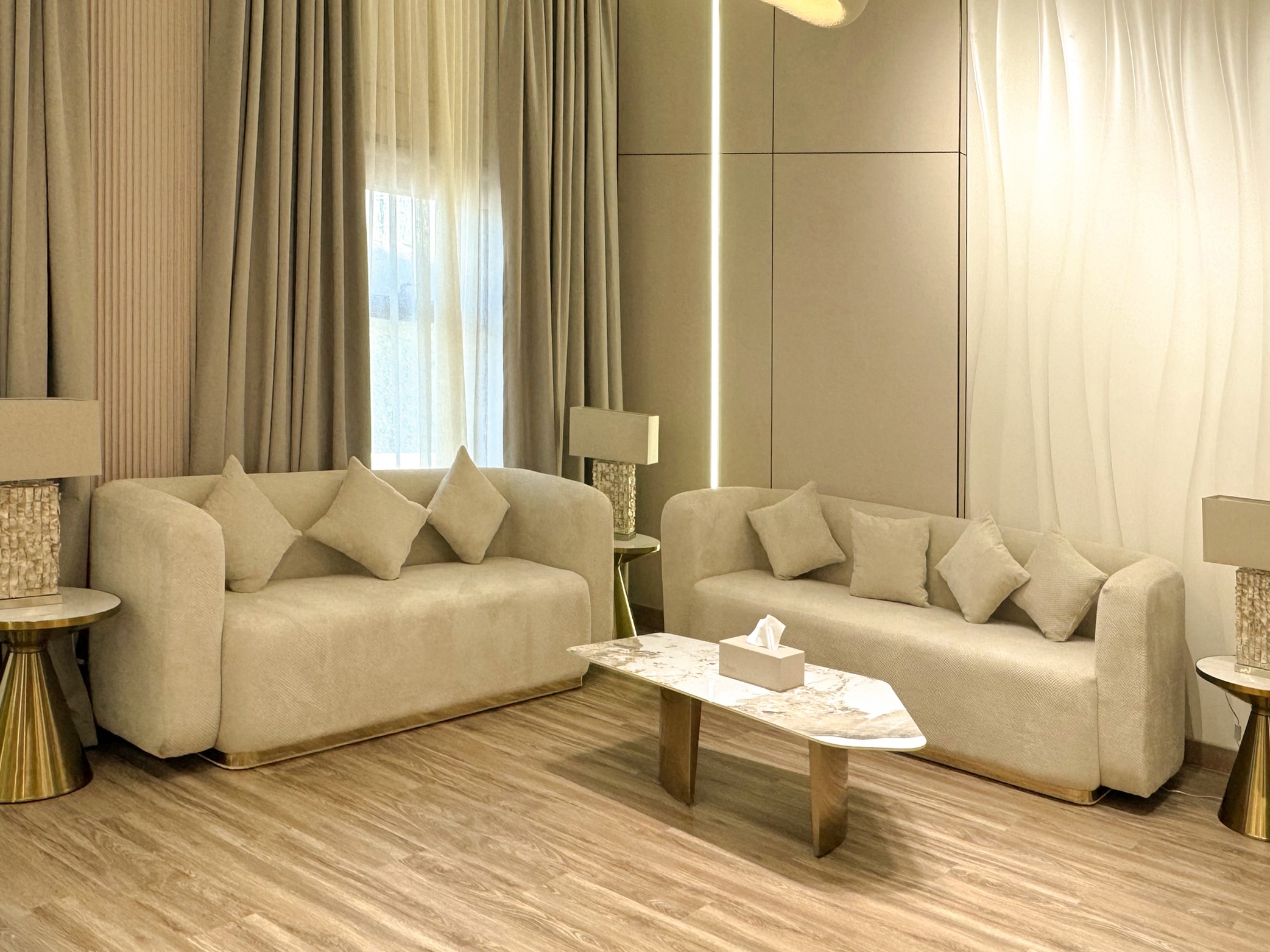 ديكورات فاخرة مصممة بأفضل المعايير العصرية، تمنح ضيوفكم إحساس الفخامة من أول لحظة دخول.