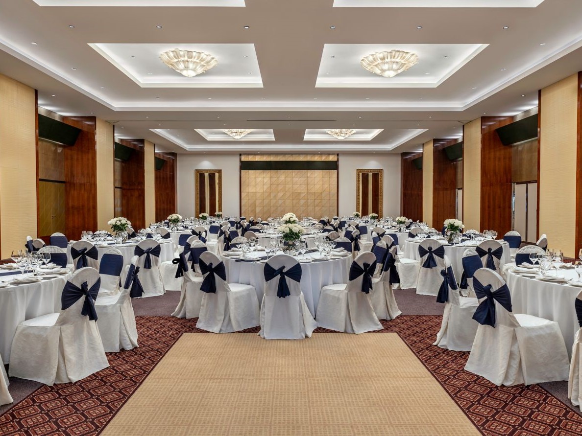 قاعة رقص هاجر منتجع لو ميريديان شاطئ العقّة – تصميم راقٍ وتجهيزات متكاملة لحفل يليق بالمناسبة