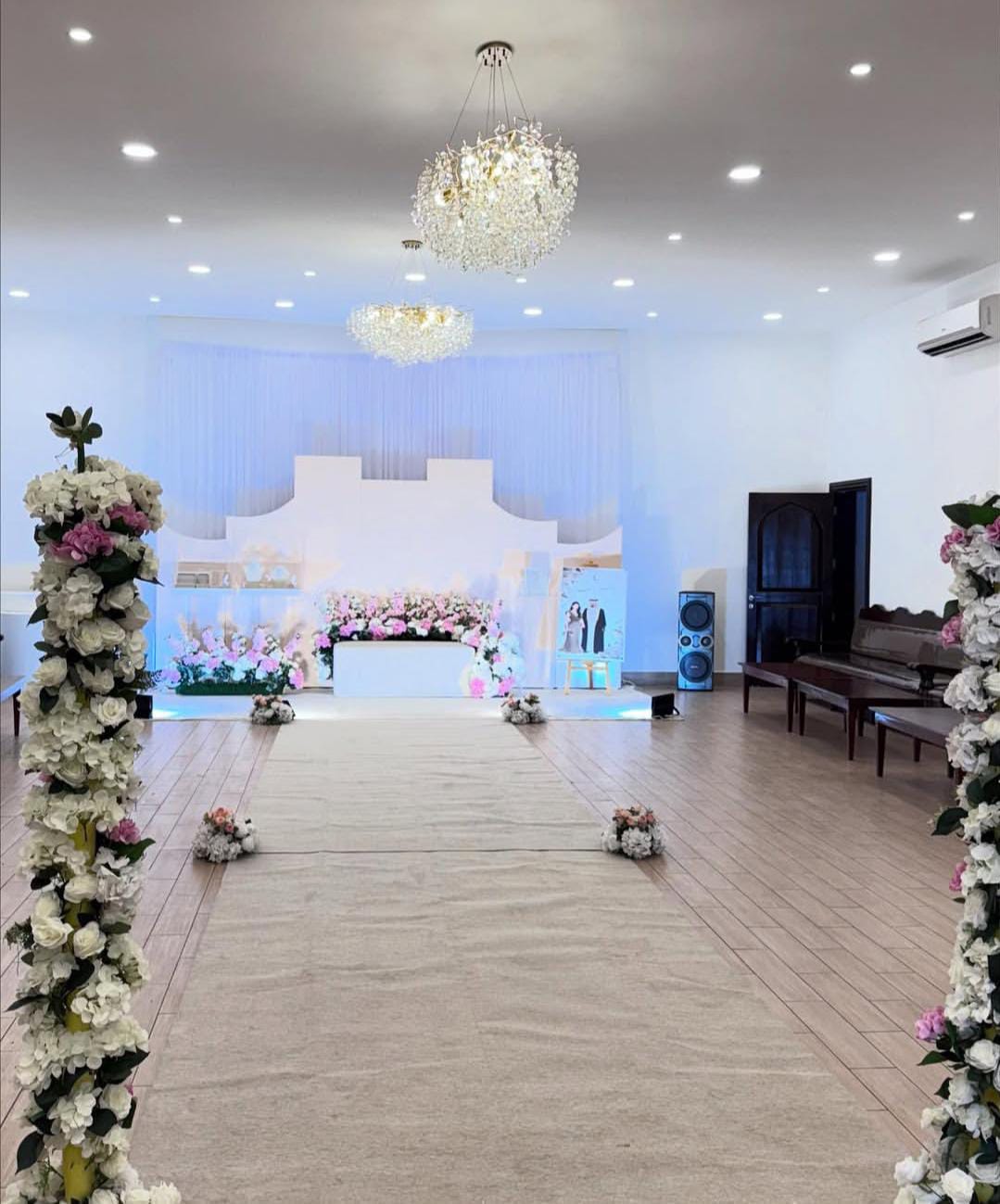 - قاعة رئيسية مجهزة بالكامل لاستقبال مختلف المناسبات: حفلات الزفاف الصغيرة، الخطوبة، عقد القران، أعياد الميلاد والاجتماعات العائلية