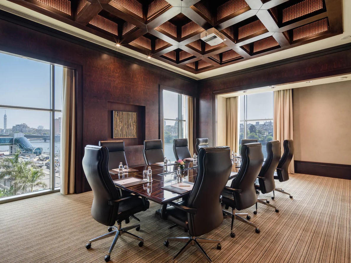 تبدأ من قاعات صغيرة لمجالس الإدارة تتسع لـ 14 شخصًا، وصولاً لمساحات أوسع تطل على النيل لإقامة اجتماعات الشركات.