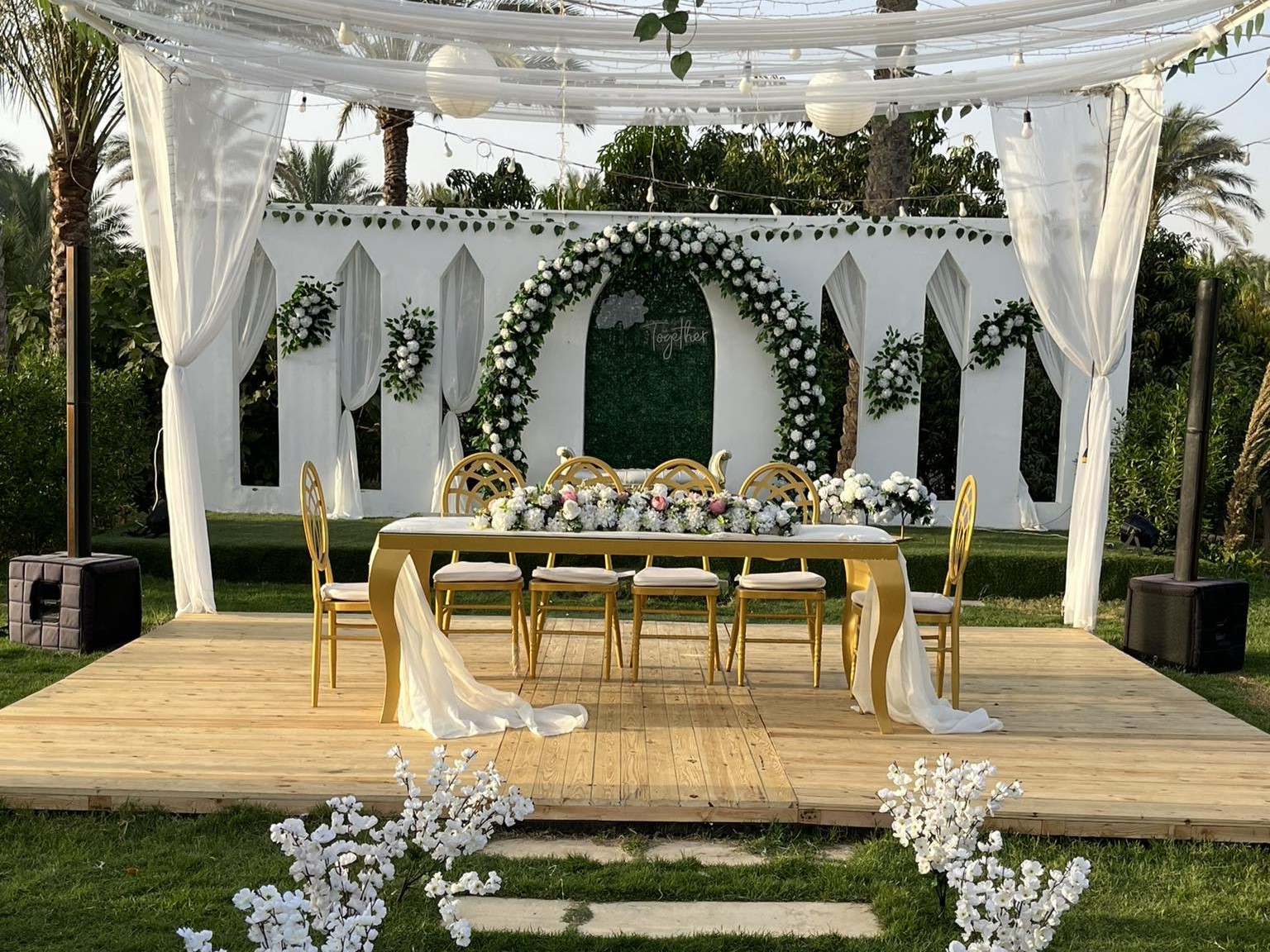 قاعة أفراح لاڤيستا✔ ترابيزة المأذون مزينة بأجمل الديكورات. ✔ دي جي يضيف جو من المرح والبهجة.