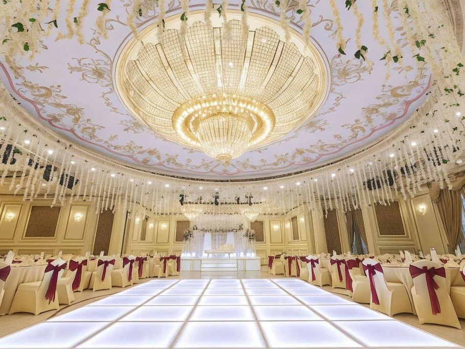 - مساحة كبيرة لرقصة الزفاف وتجهيزات بصرية مبهرة لعرض اللحظات على الشاشات.