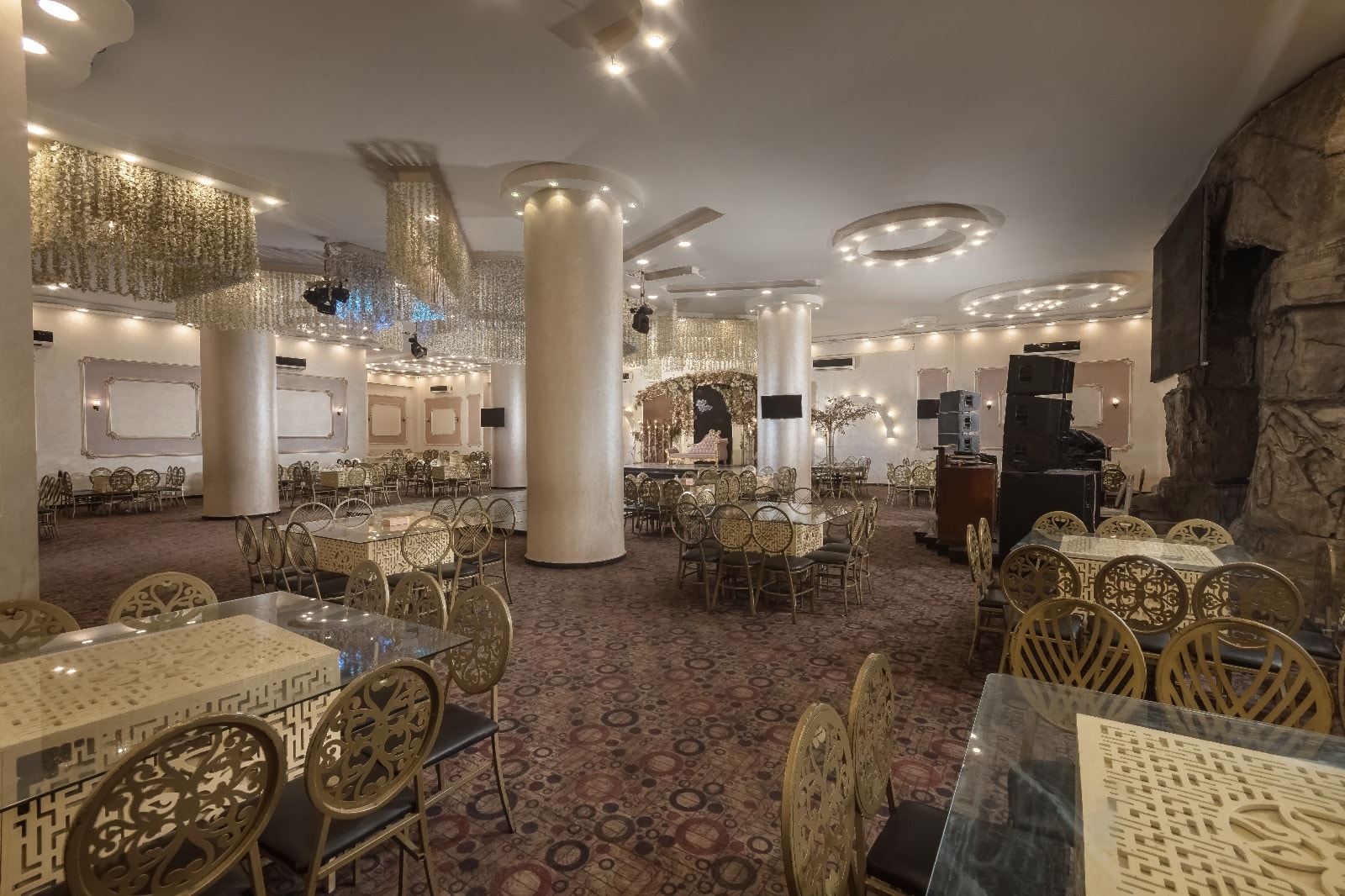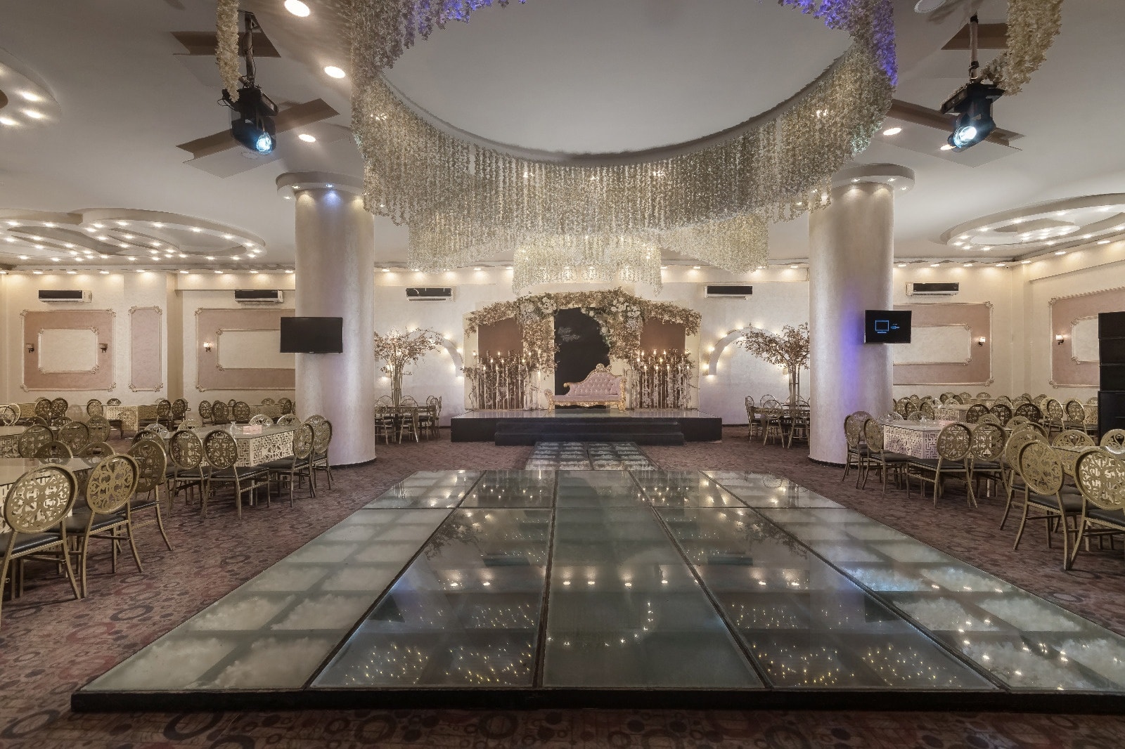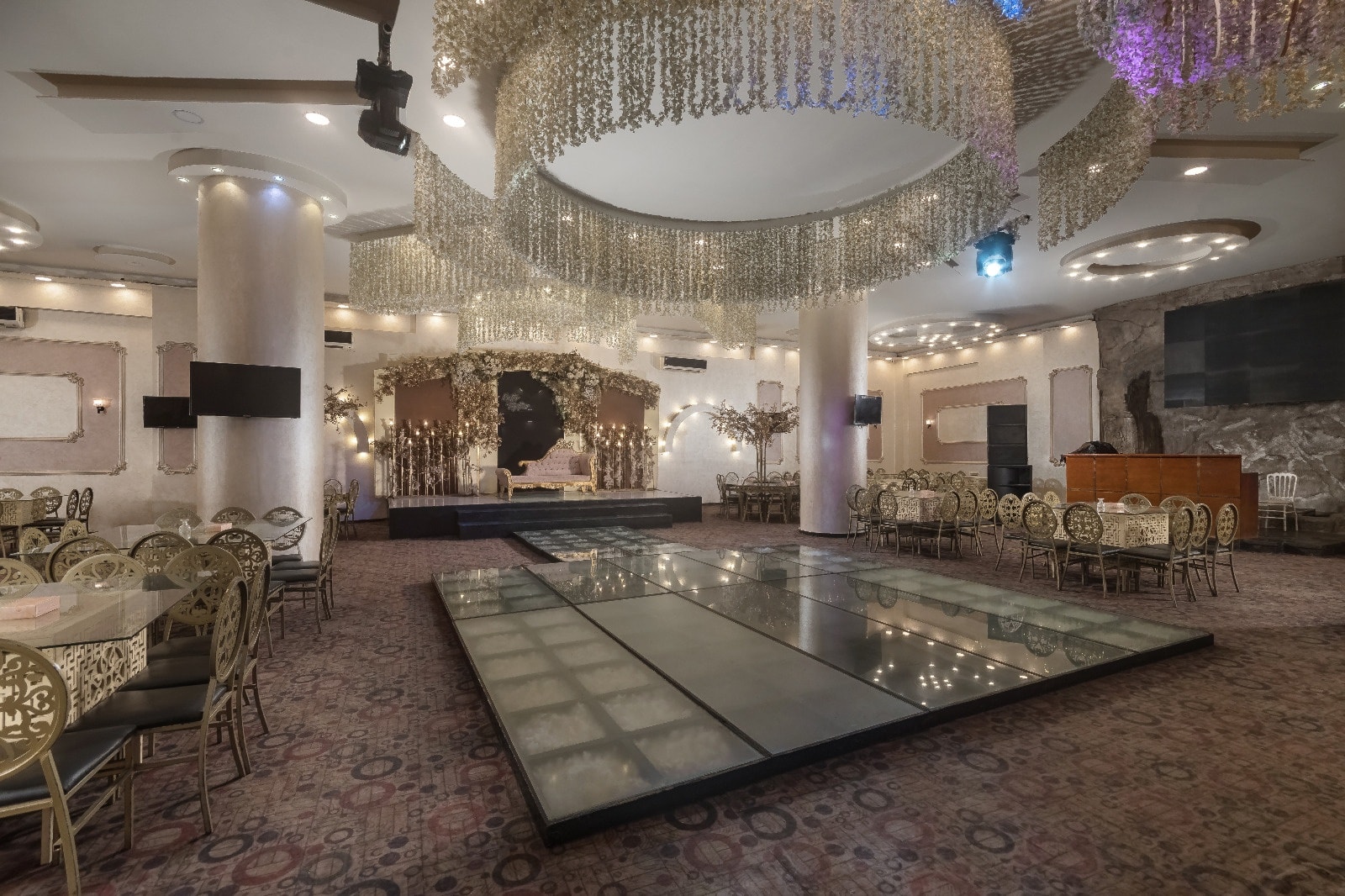 بتصميم راقي ومساحة مناسبة للأفراح المتوسطة والكبيرة.