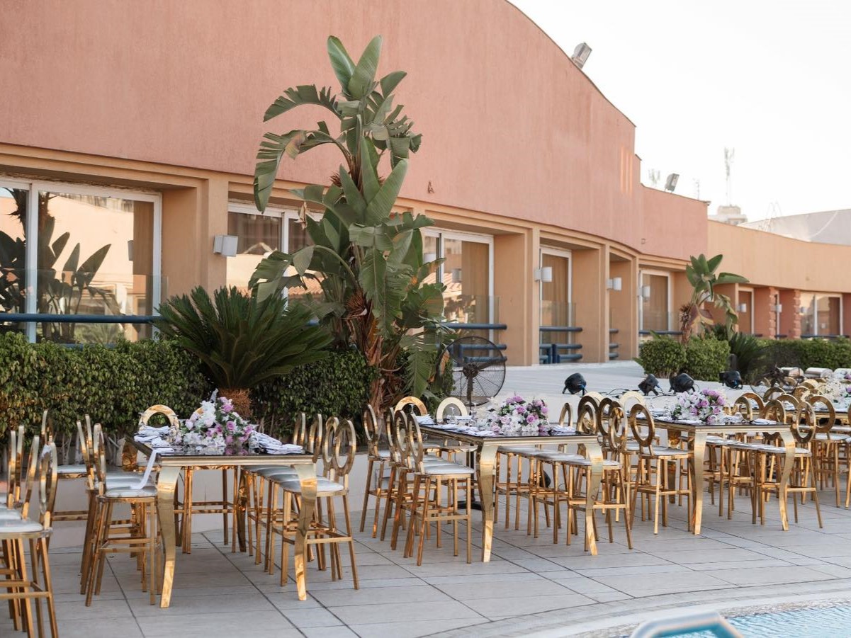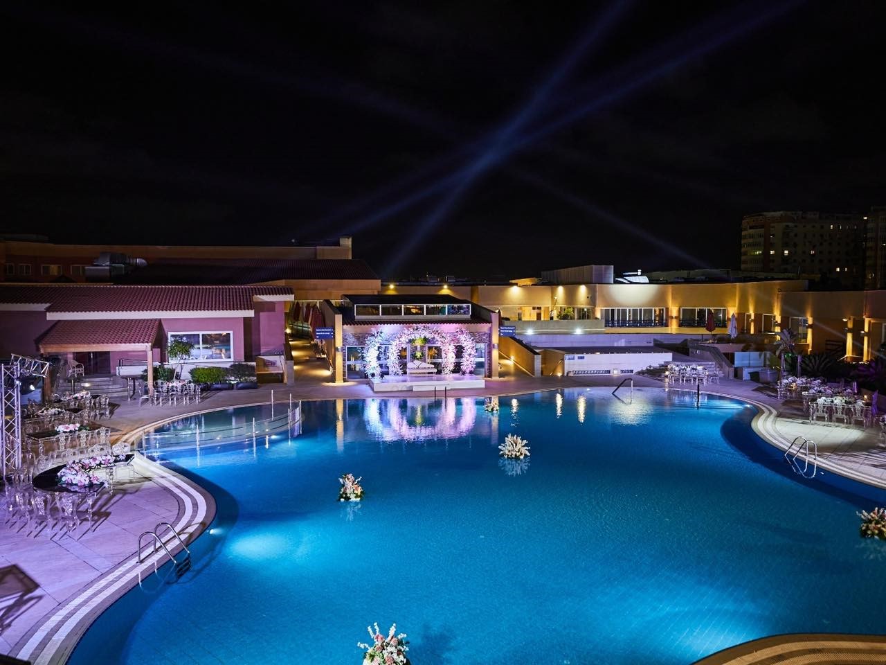 لو نفسك في حفل زفاف مفتوح بأجواء رومانسية.. قاعة الزفاف اوبن اير أمام حمام السباحة هي خيارك المثالي.