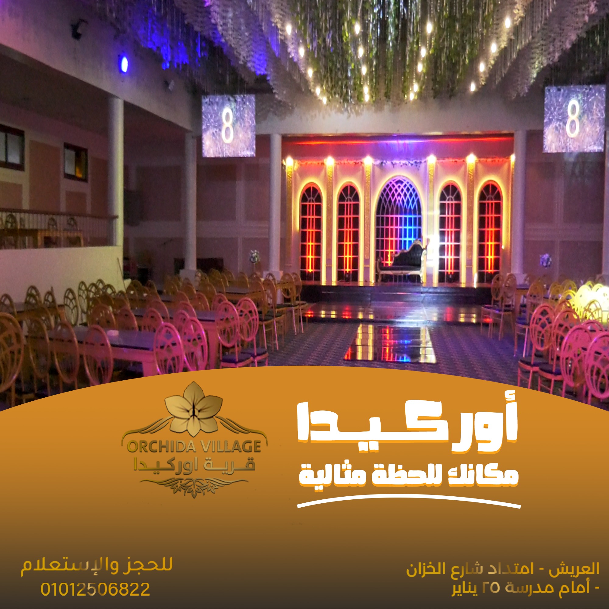 قاعة أوركيدا المغلقة هتديك يوم فرح مرتب وفخم من أول لحظة.