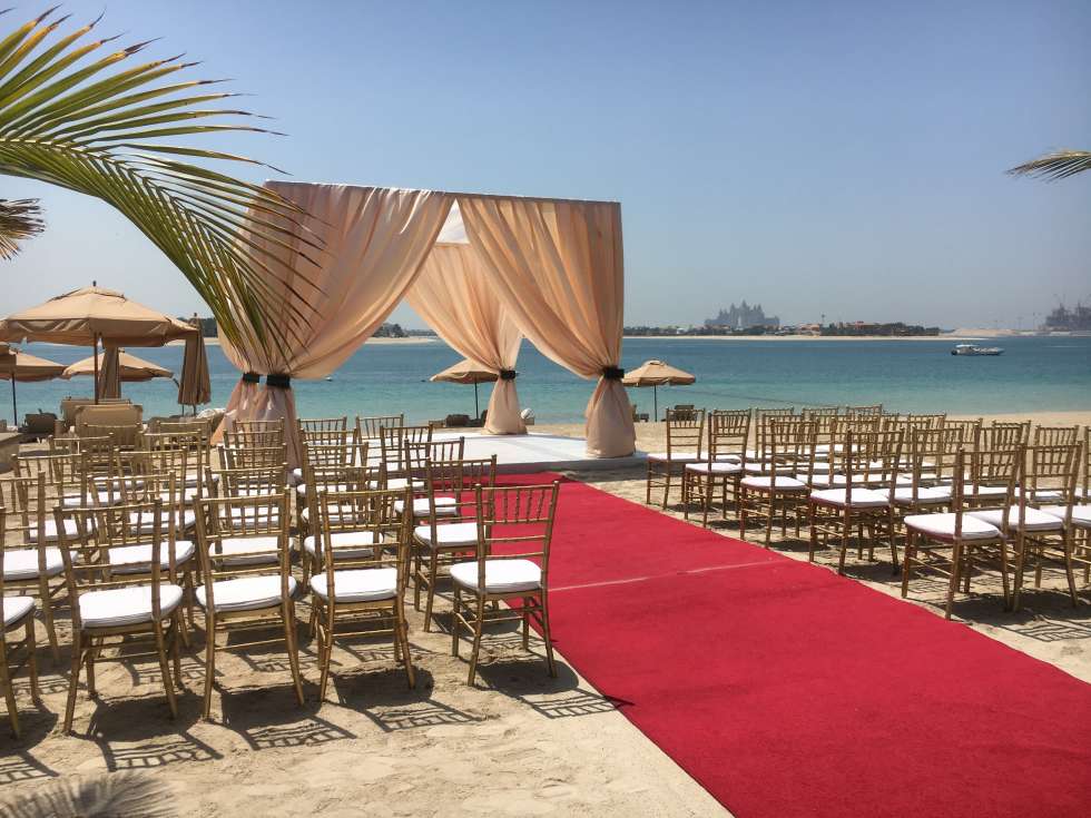 يوفر الشاطئ الخاص في والدورف أستوريا دبي بالم جميرا مكانًا مثاليًا لحفلات الزفاف المفتوحة،