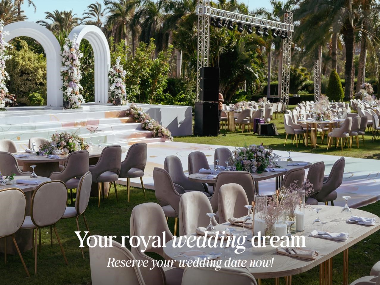 • ديكور راقي قابل للتخصيص حسب ذوق العروسين.