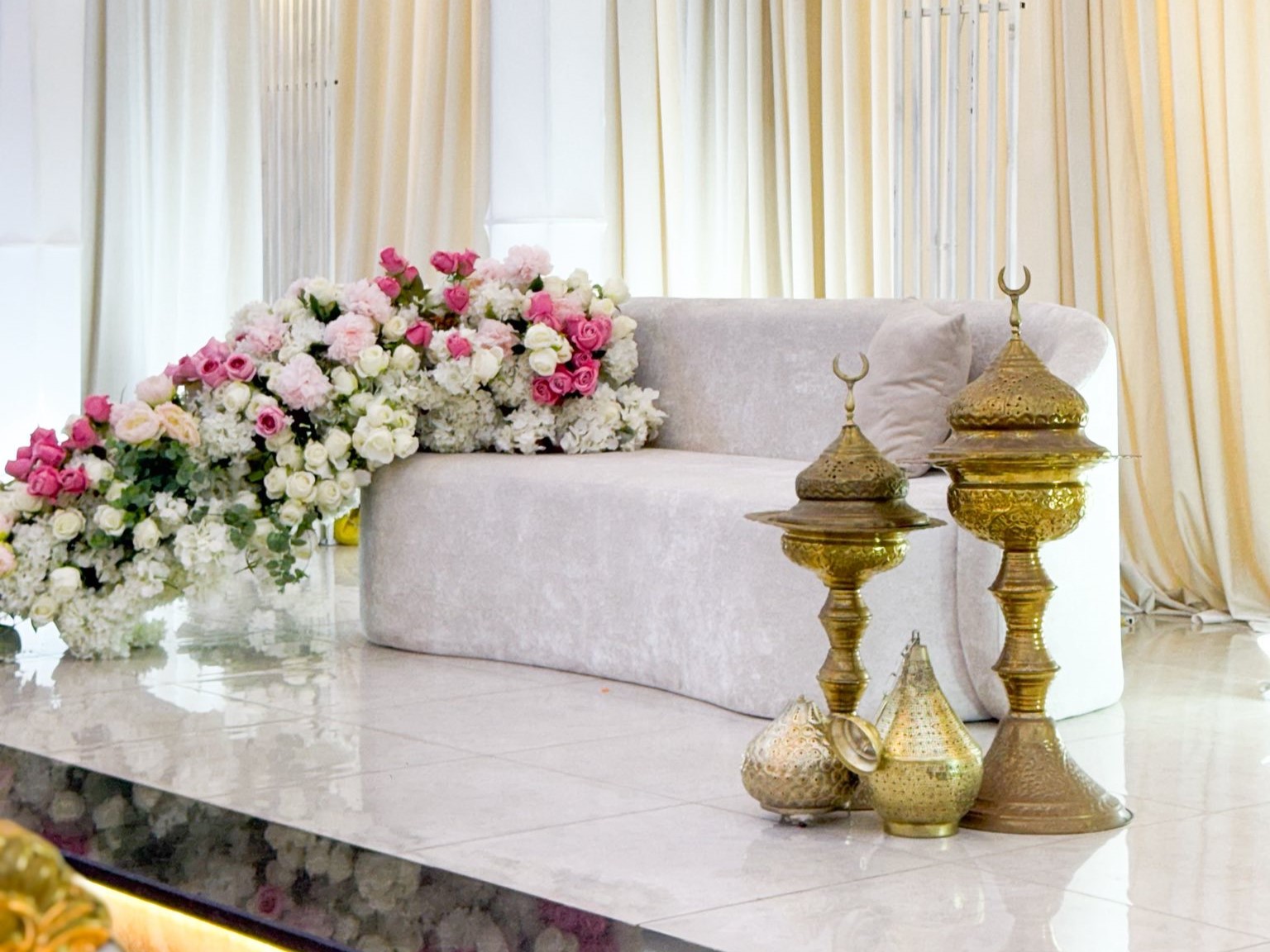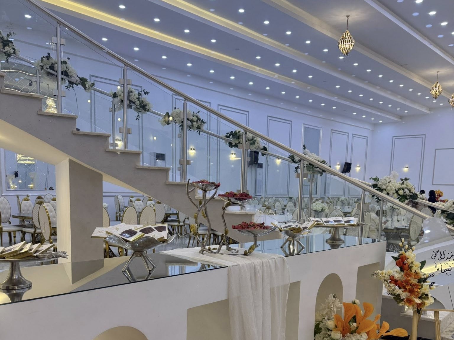 كما توفر القاعة إمكانية تنسيق الديكور والإعدادات حسب ذوقكم ونوع المناسبة، لتتحول كل لحظة إلى ذكرى لا تُنسى.
