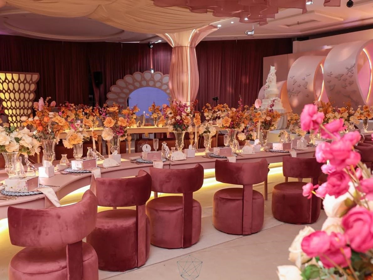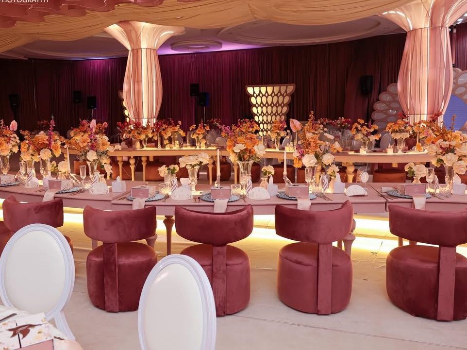 The hall features a modern design with spacious areas that can accommodate a variety of events, from weddings and engagements to official conferences, meetings, and exhibitions, with cutting-edge technical equipment that meets all your needs and adds a professional touch to every event.