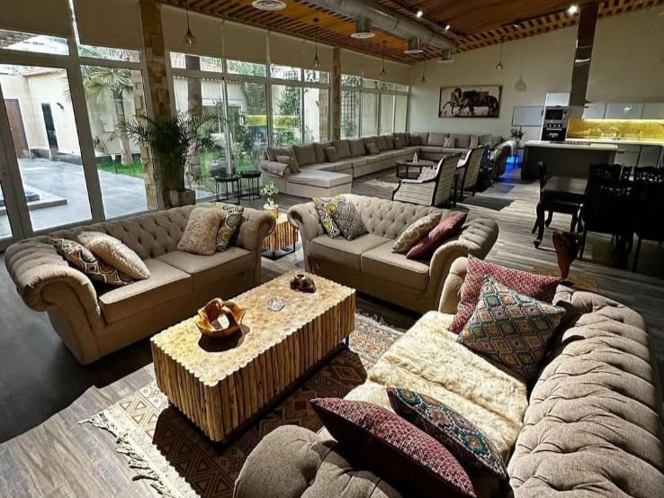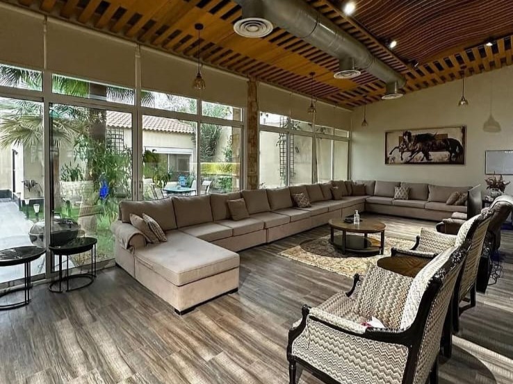 لاونج كبير يحتوي على عدة جلسات مريحة