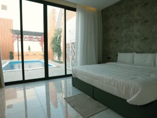- غرفة نوم ماستر مطلة على المسبح.