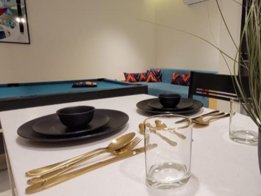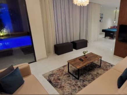 - صالة جلوس أنيقة مجهزة بطاولة بلياردو لعشاق الترفيه.