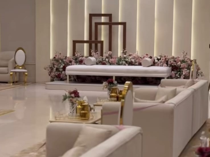 كل التفاصيل مُعده بإحترافية: مسرح كوشة - طاولات ضيافة - إضاءة LED - صوتيات عالية الجودة.