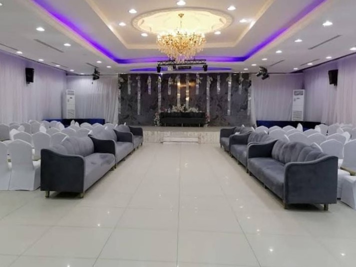 القاعة تجمع بين البساطة الراقية والديكور العصري، عشان تضيف لمناسبتك لمسة جمال بدون مبالغة.