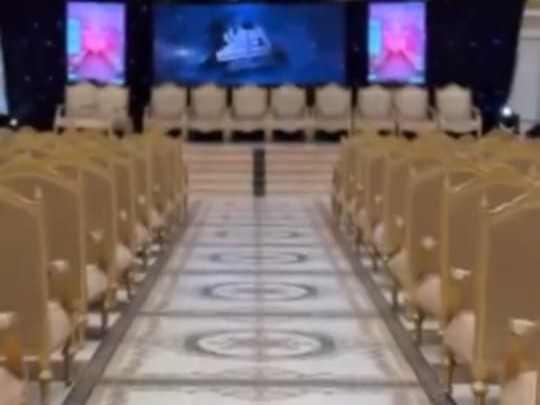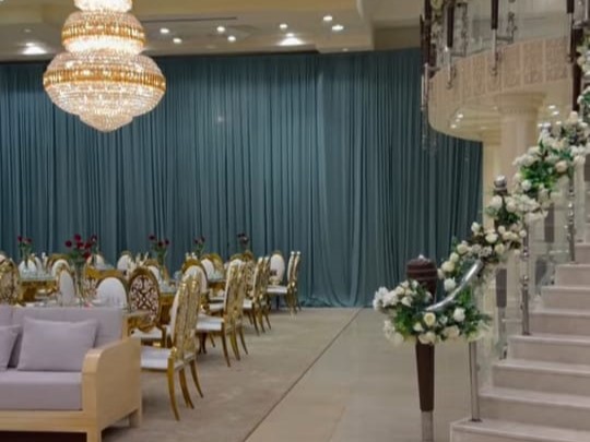 قاعة النساء تتسع لأكثر من 500 سيدة، مزينة بأحدث الثريات الذهبية، وممر ملكي مزين بالورد والإضاءة الساحرة، ومسرح فاخر وكوشة مصممة بأحدث الأذواق.