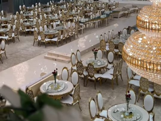 قاعة الرجال تسع أكثر من 500 شخص، بديكورات ملكية وأسقف عالية وثريات فخمة، مع جلسات داخلية وخارجية مجهزة بالكامل.
