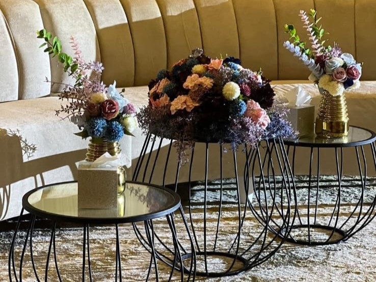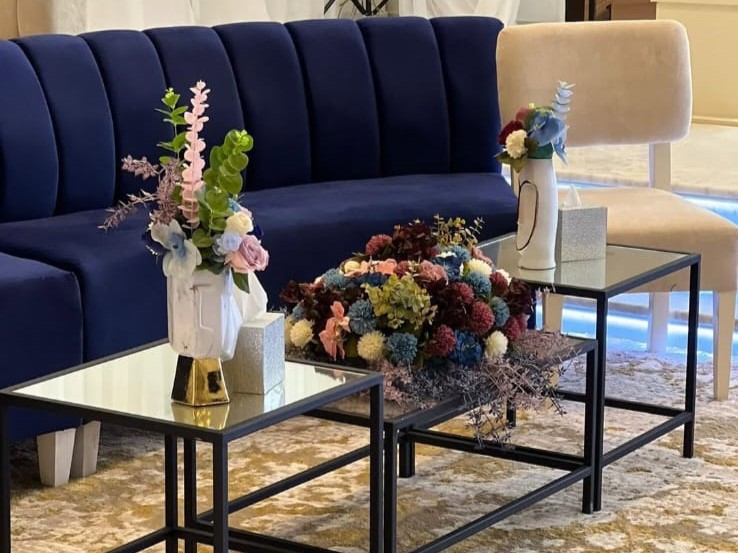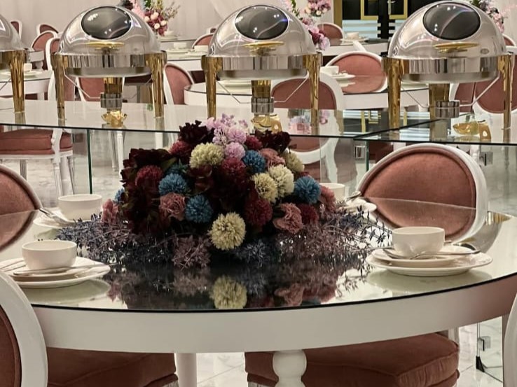 كوشة وتنسيق قاعة بأعلى معايير الذوق والفخامة.