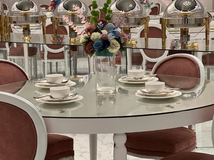 قاعات واسعة للرجال والنساء تتسع من 100 إلى 250 ضيف لكل قسم.