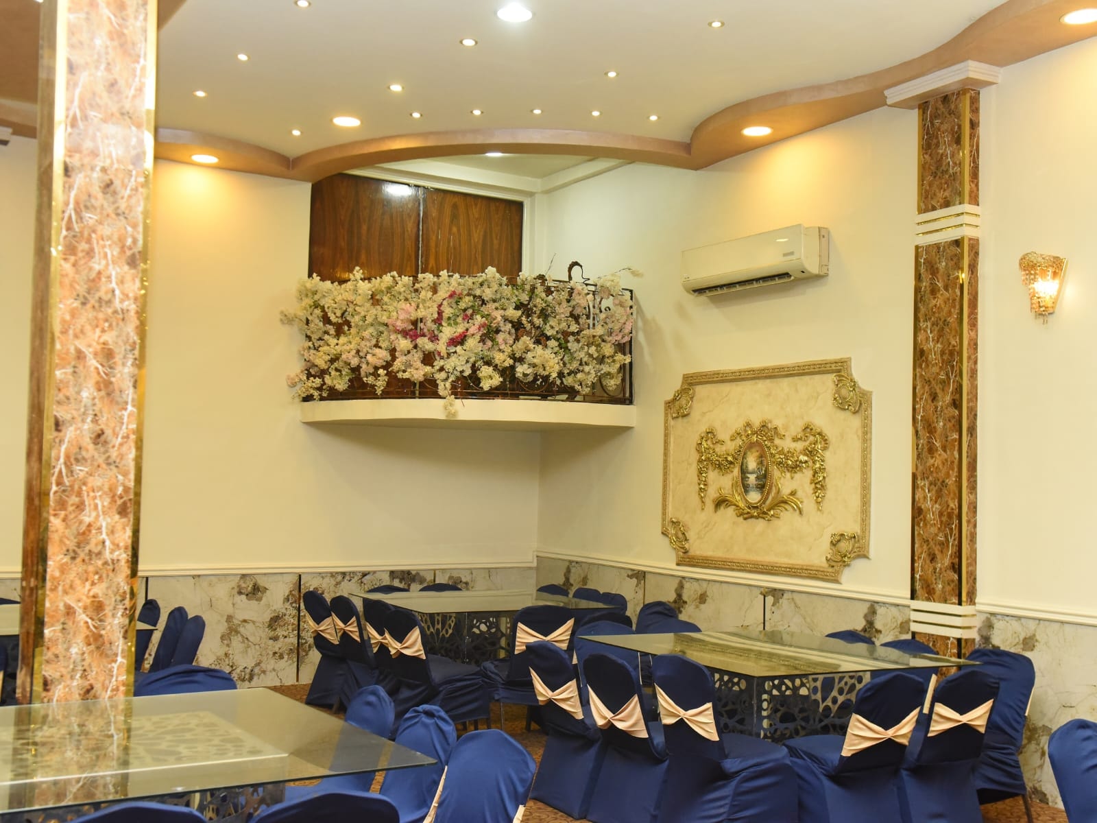 القاعة مناسبة للأفراح والخطوبة والمناسبات السعيدة، ومجهزة علشان تستقبل الضيوف بشكل منظم ومريح.