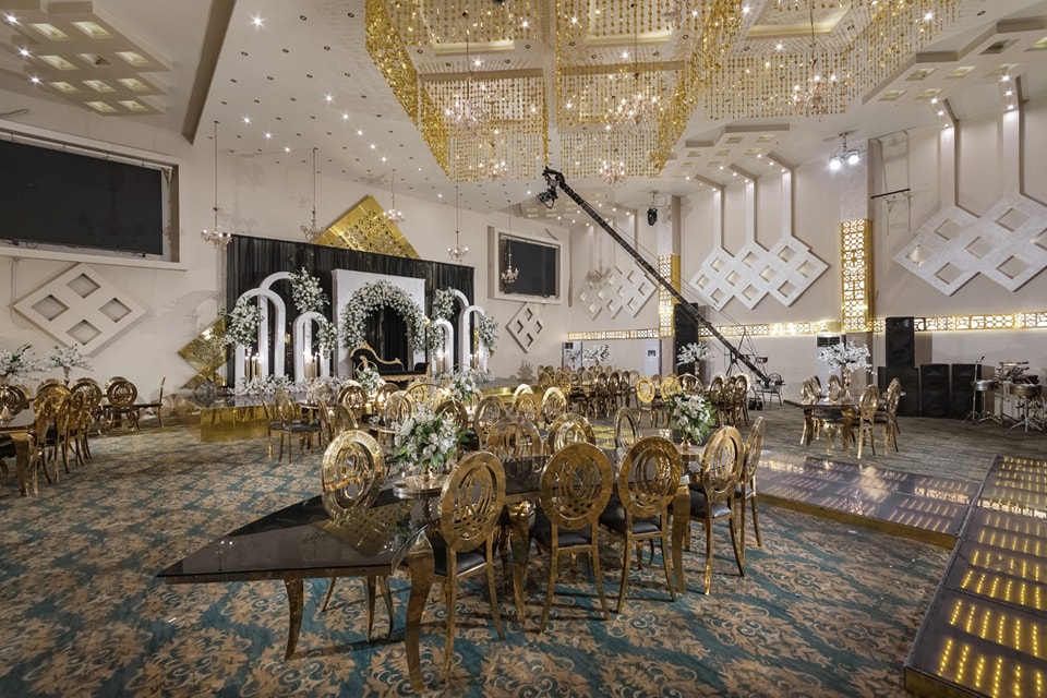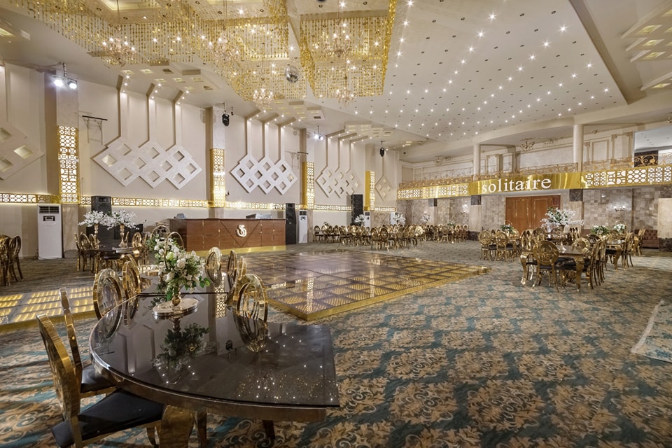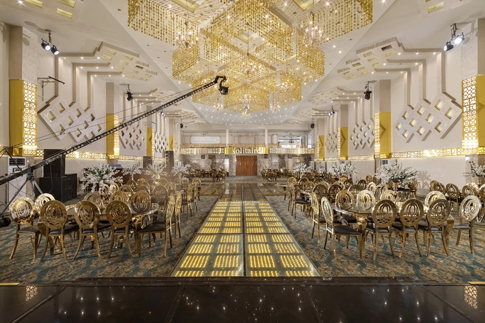 قاعة سوليتير بتتميز بتقسيم مريح وتنظيم يضمن راحة المعازيم وسهولة الحركة.