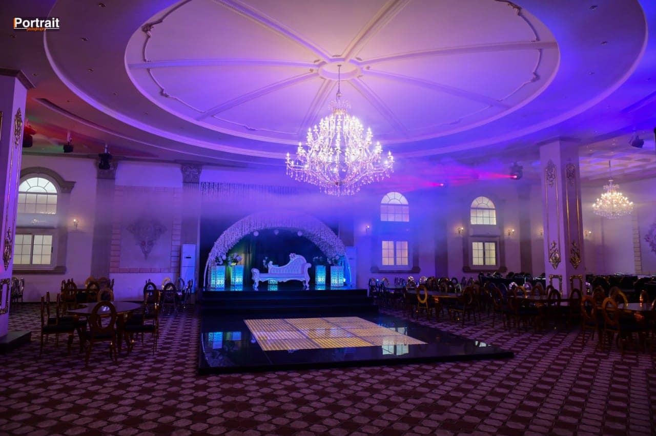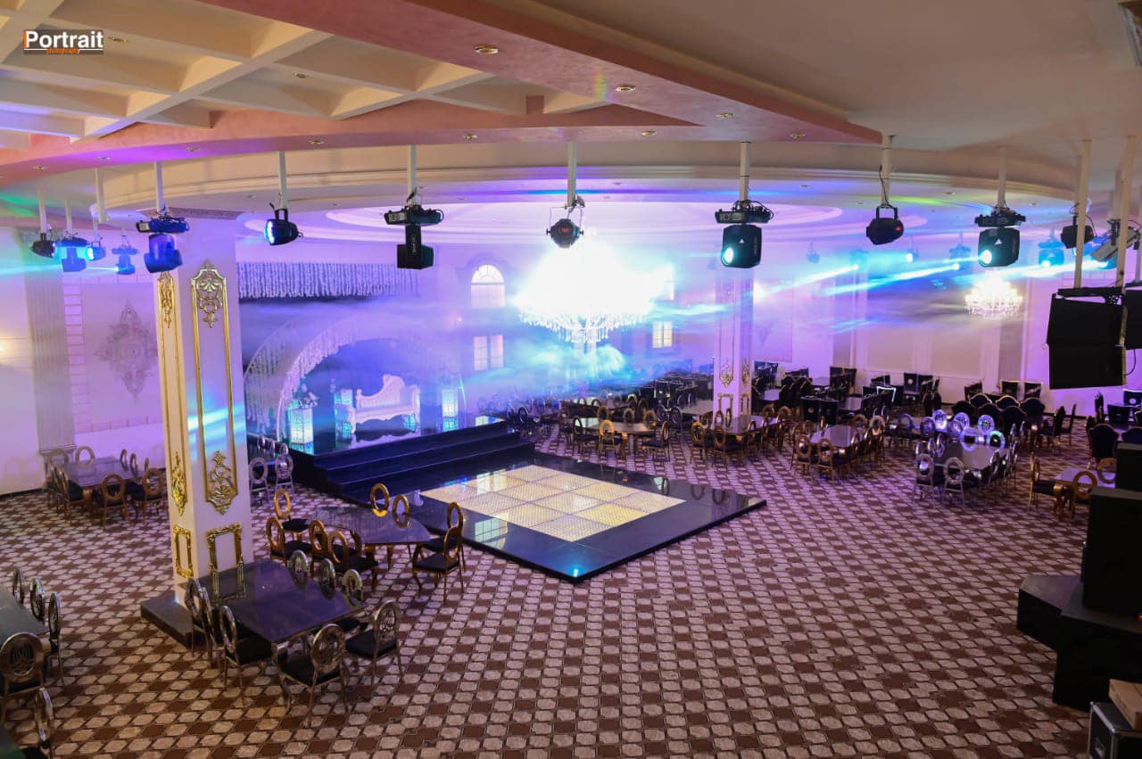 تم تجهيز القاعة بديكور أنيق يدي إحساس بالفخامة، مع توزيع منظم للطاولات والجلسات، بالإضافة إلى تجهيزات حديثة للصوت والإضاءة تساعد على خروج الحفل بشكل مميز.