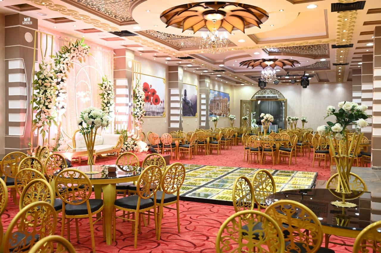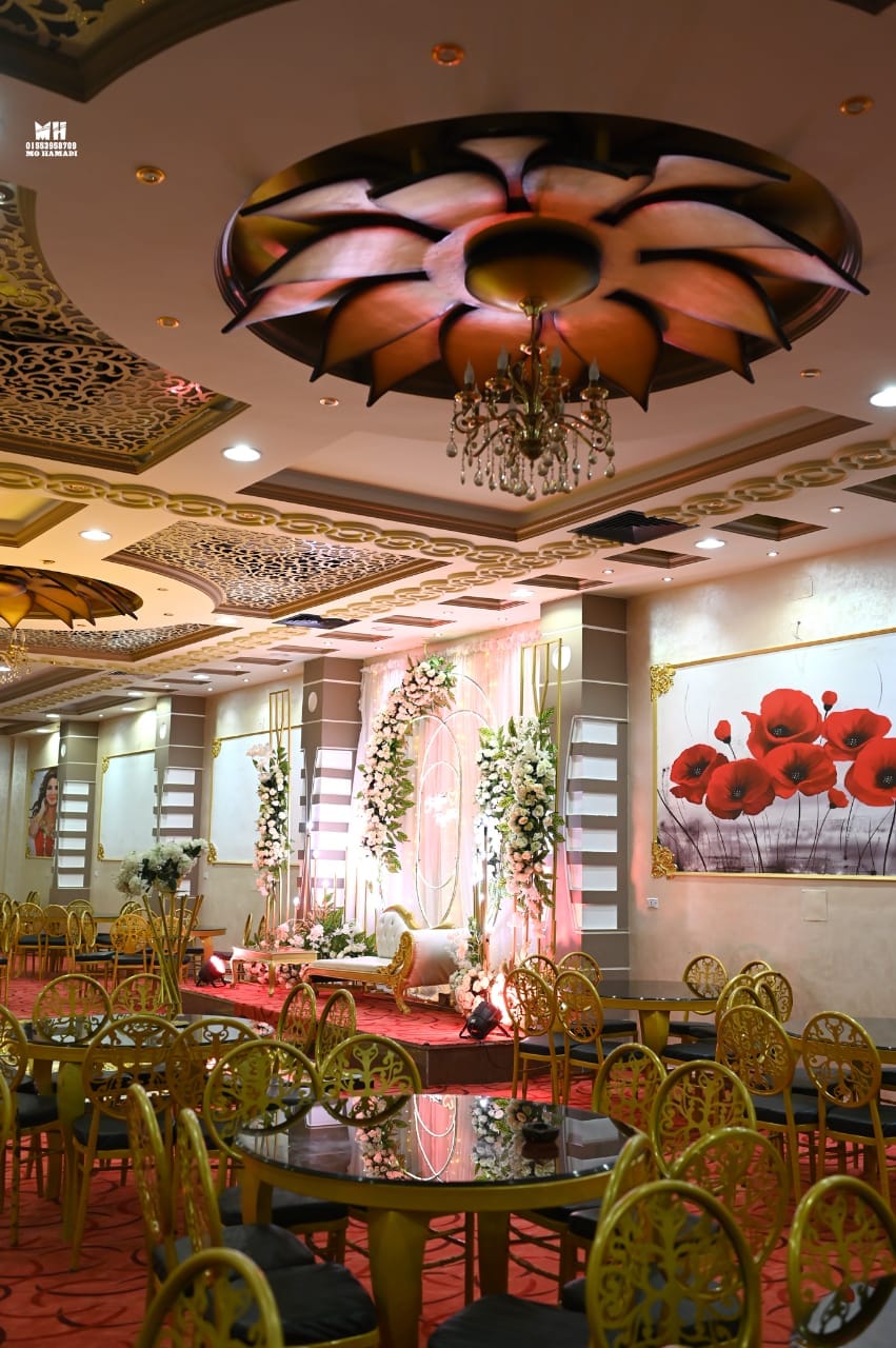 قاعة كوين مناسبة للي بيدور على قاعة مغلقة بتصميم شيك وتنظيم هادي يناسب المناسبات المتوسطة.