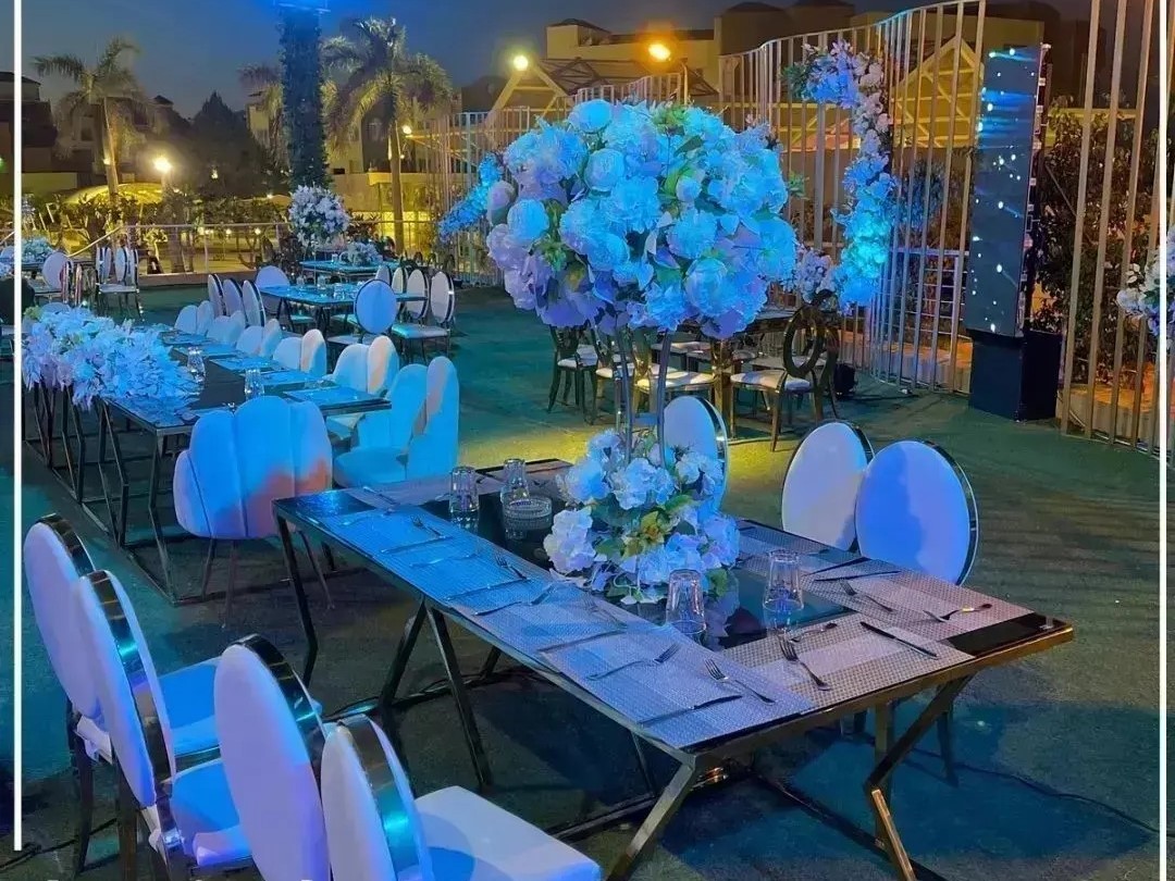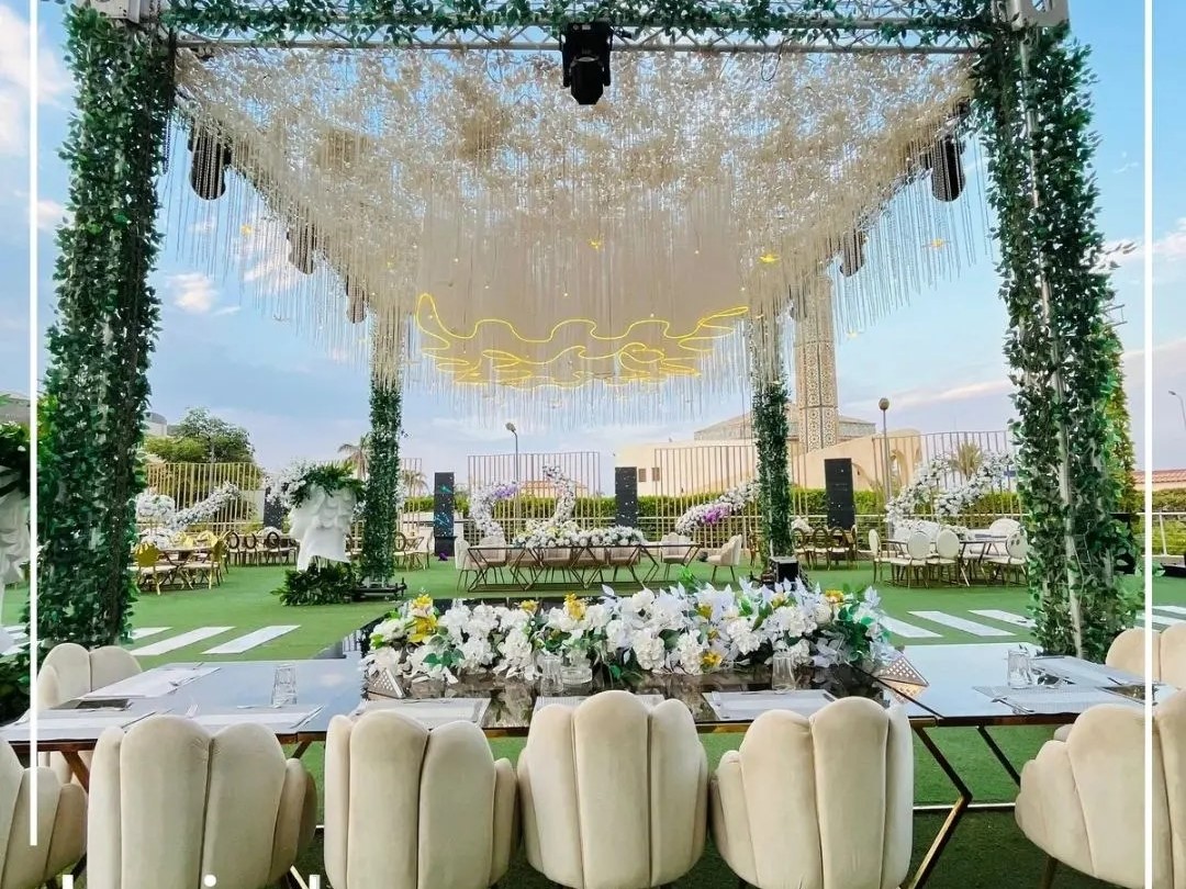 كما أن فريق العمل المتخصص في تنظيم الحفلات يهتم بكافة التفاصيل بدءًا من ترتيب الطاولات وحتى تصميم الزفة، لضمان أن يخرج حفل الزفاف في أفضل صورة ممكنة.