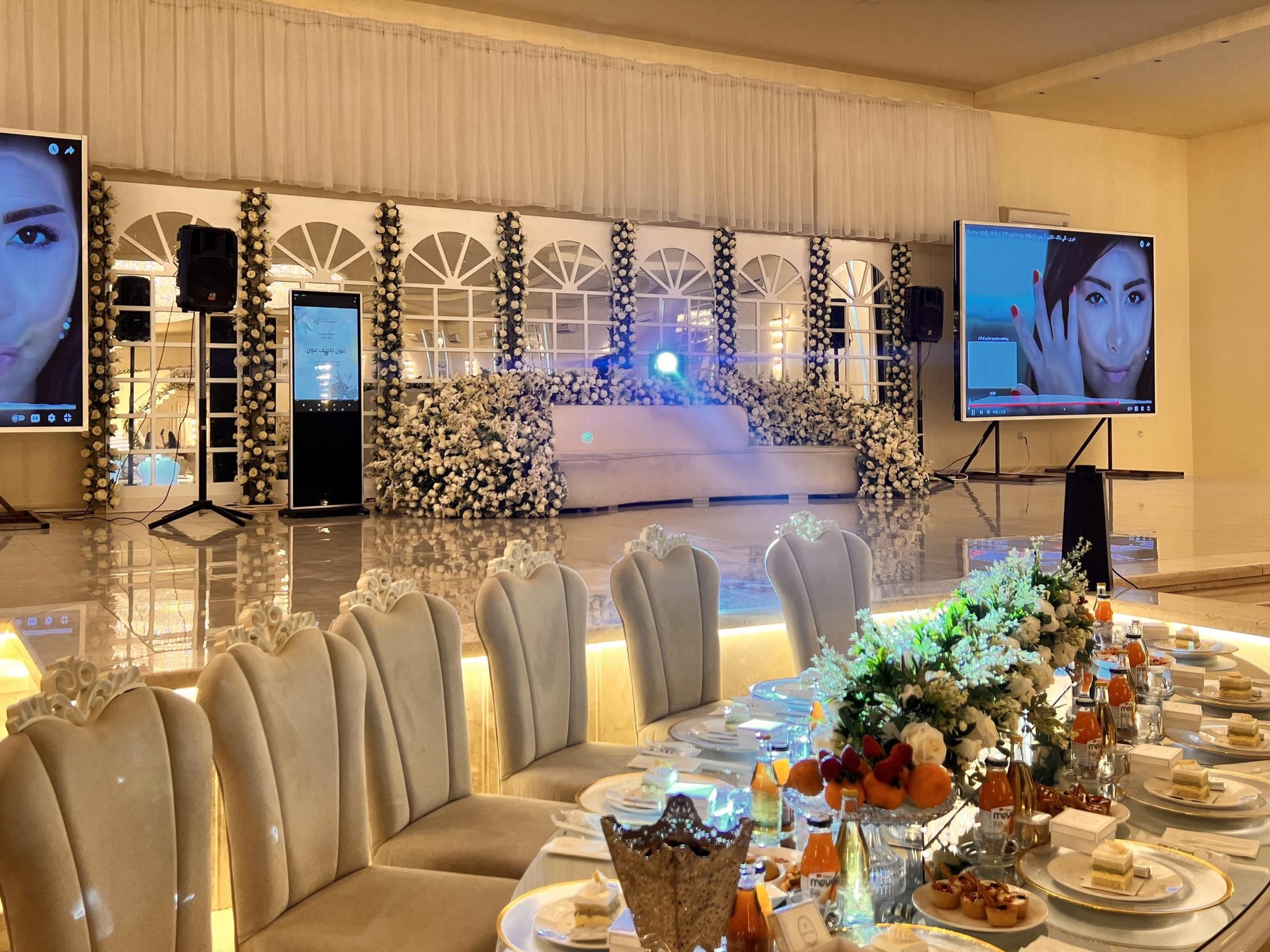 La salle se distingue par ses services complets, allant de la préparation et du service du dîner avec les plats les plus délicieux, en passant par les jus, les boissons et les amuse-bouches de toutes sortes (salés et salades), jusqu’aux desserts luxueux qui ajoutent une touche spéciale à la fin de la célébration.