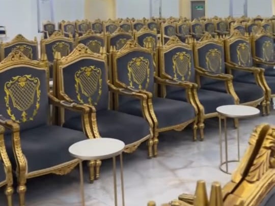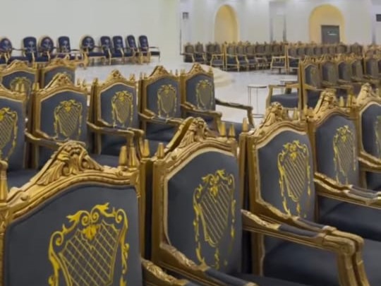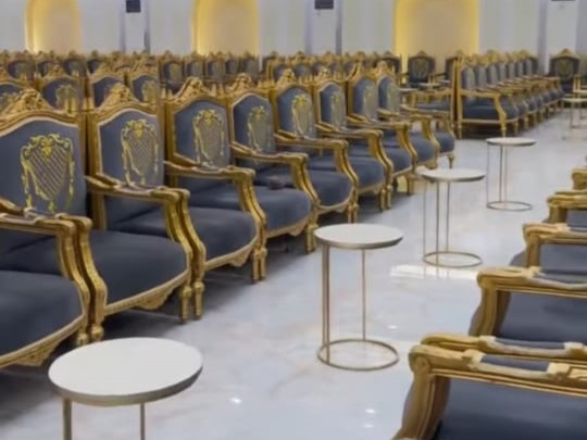 تصميم فاخر بأسقف عالية وثريات كريستال.