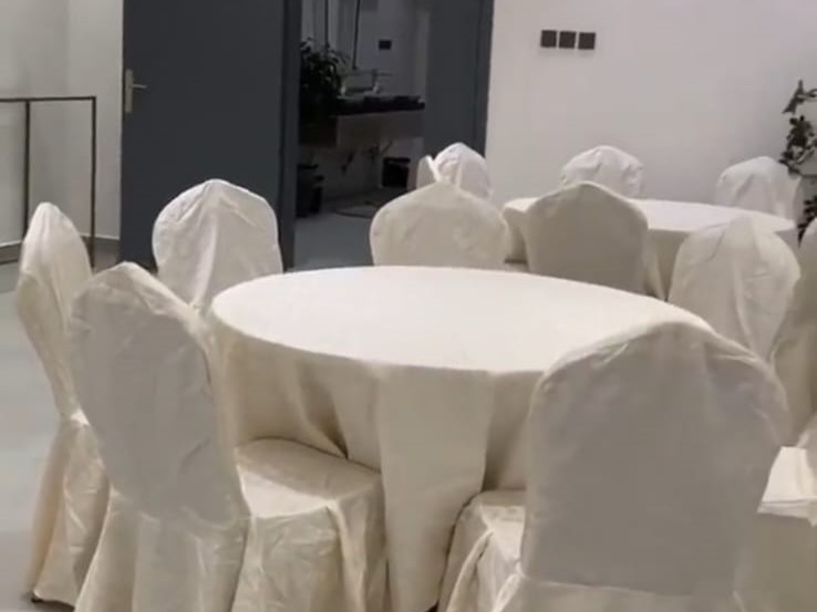- صالة طعام مجهزة مع طاولات بوفيه للضيافة.