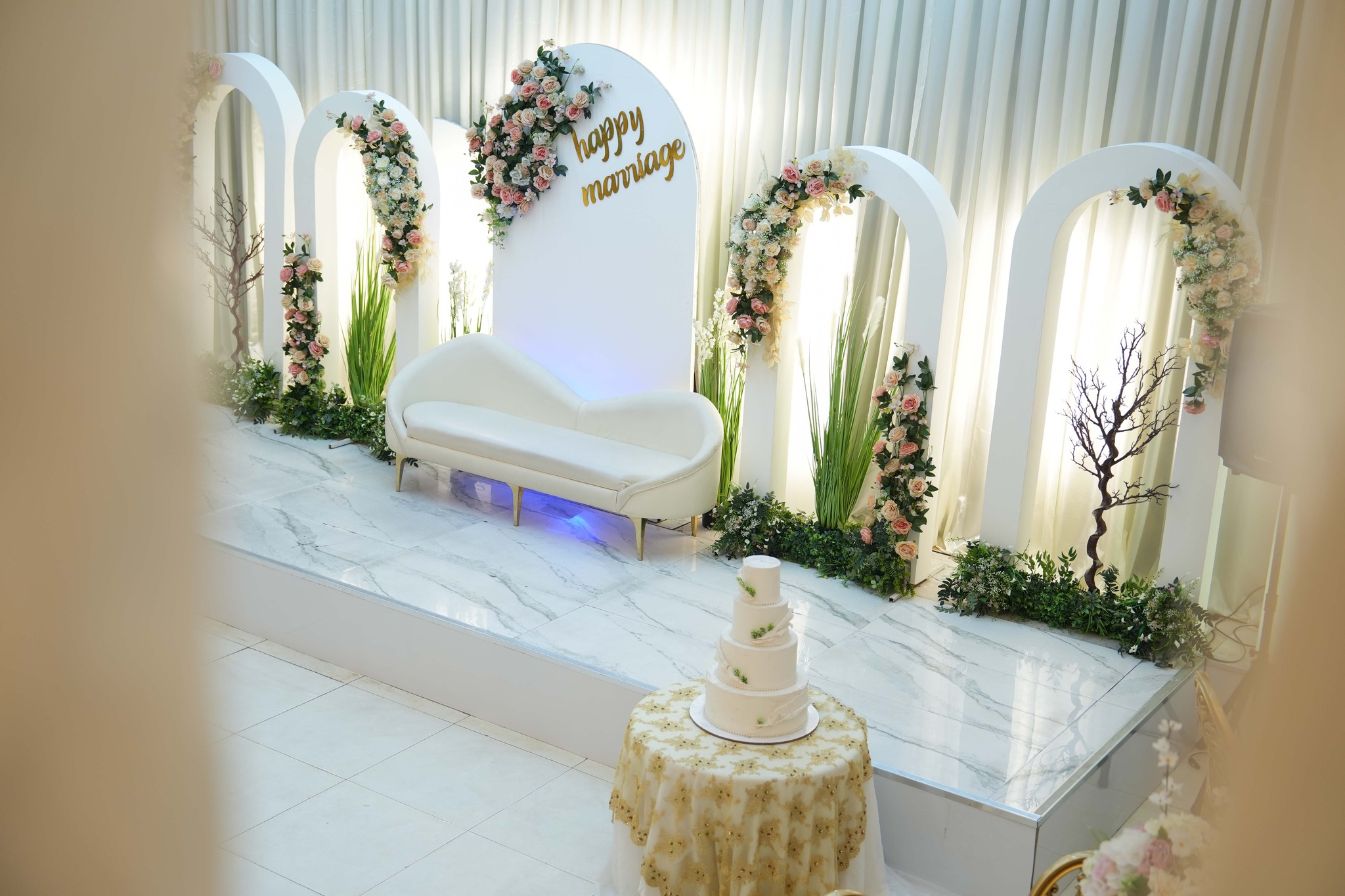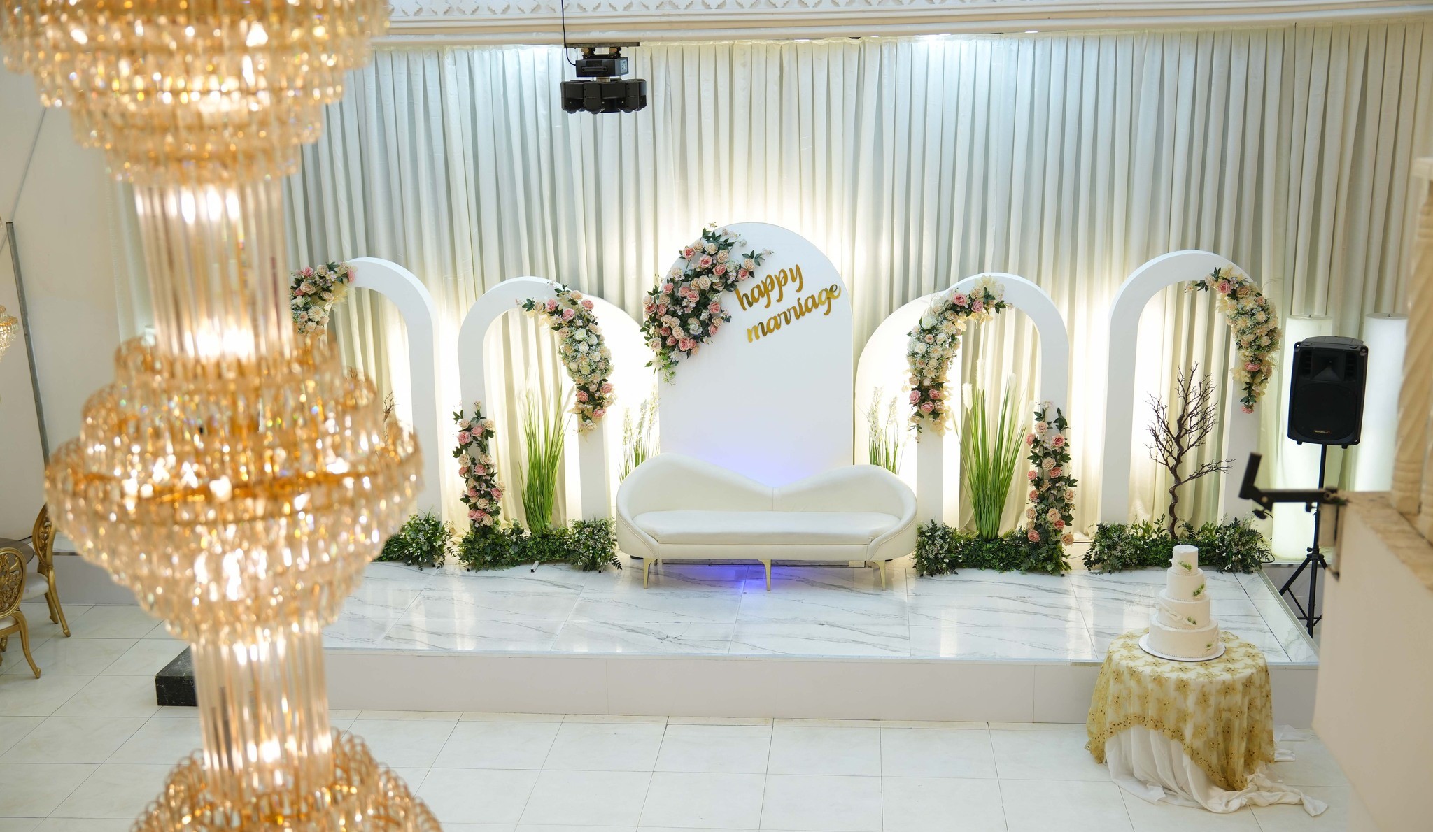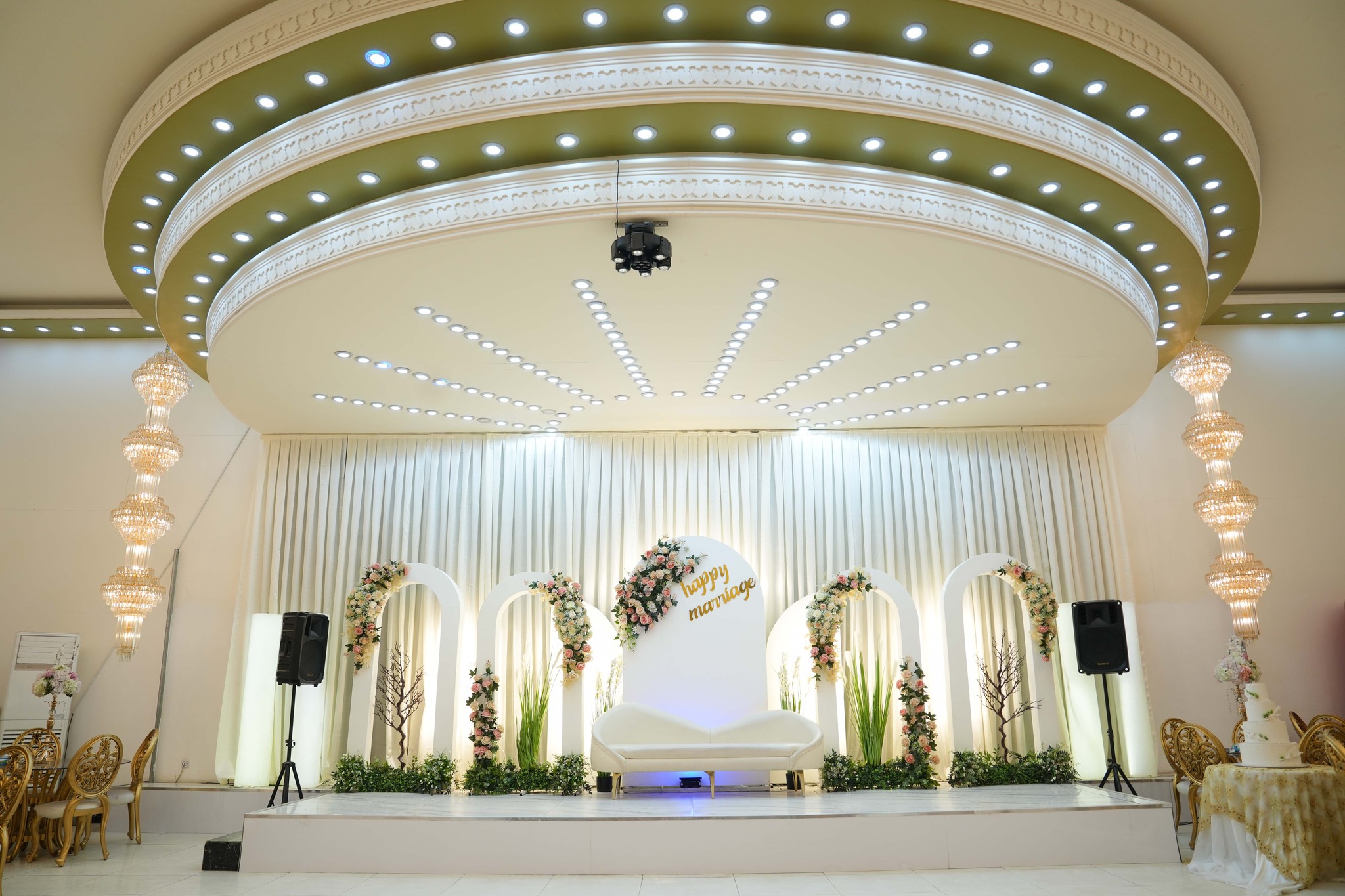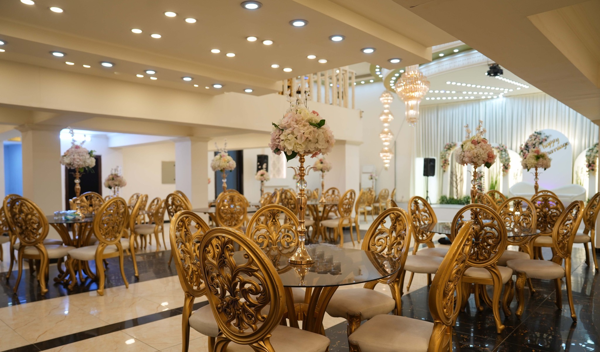 القاعة بطابع كلاسيك أنيق، تتسع لحد 300 شخص، ومناسبة لحفلات الزفاف والمناسبات الخاصة. نهتم بالتفاصيل، بالتنسيق، وبسير الحفل بسلاسة حتى تعيشون ليلتكم بدون توتر.