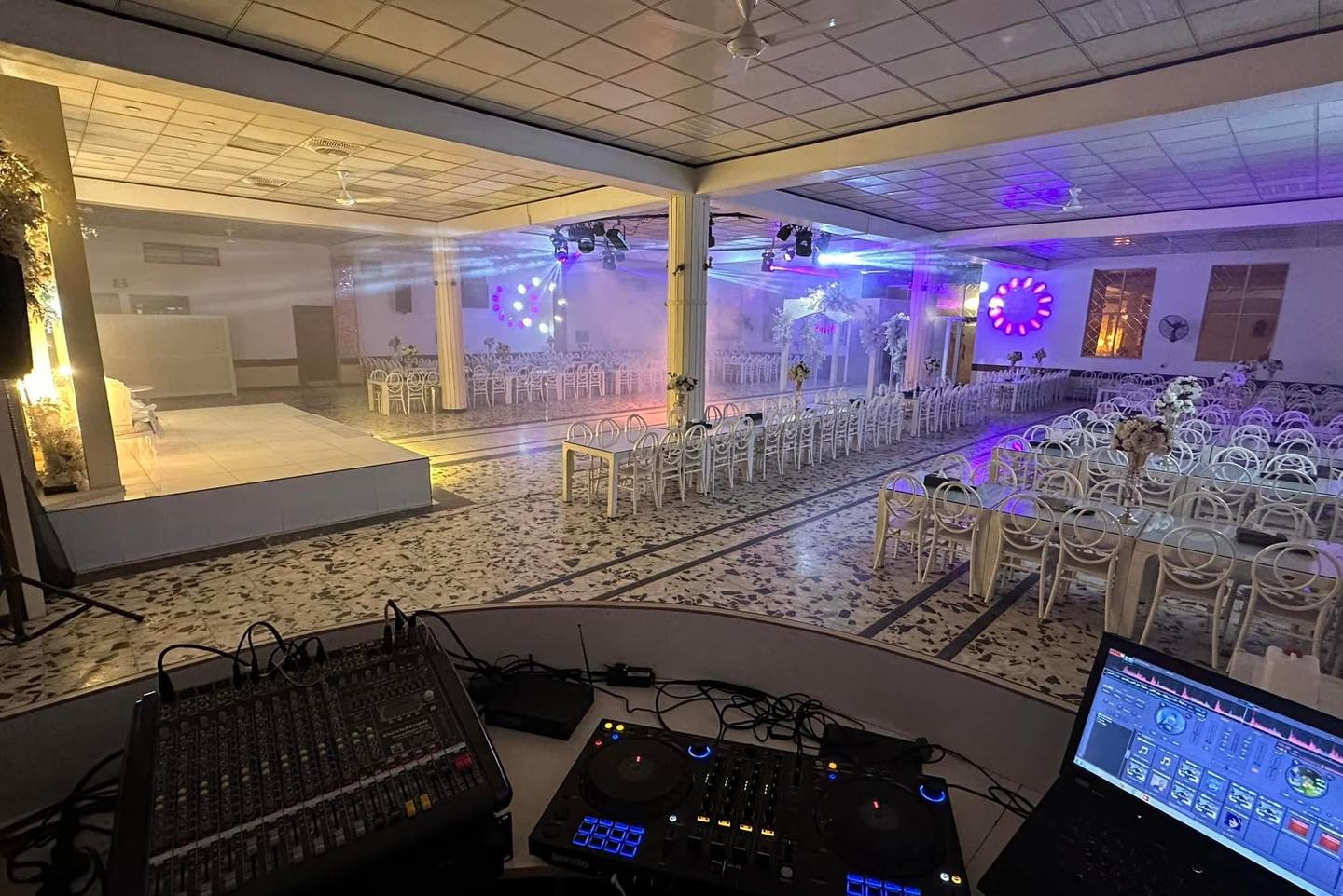 نقدّم مراسيم حفلة متكاملة تشمل الميز، الحنّة، الدي جي، أنظمة إضاءة حديثة ليزر وبيم وLED، مؤثرات دخان ثقيل، شعلات، وعصي ملوّنة، علشان تعيشون أجواء مميزة من أول لحظة. كذلك نوفر خصومات خاصة خلال أشهر الشتاء، إضافة إلى خصومات على الفنادق والصالونات لزبائن القاعة.