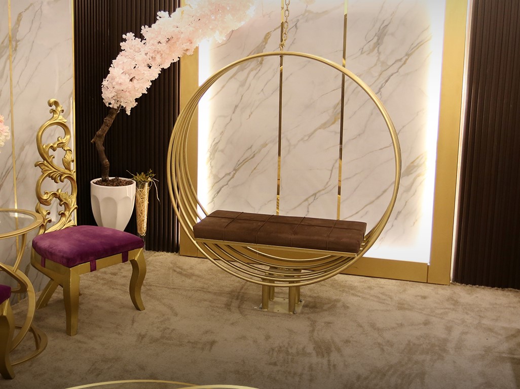 ديكور ذهبي فاخر وكوشة بتصميم مميز.