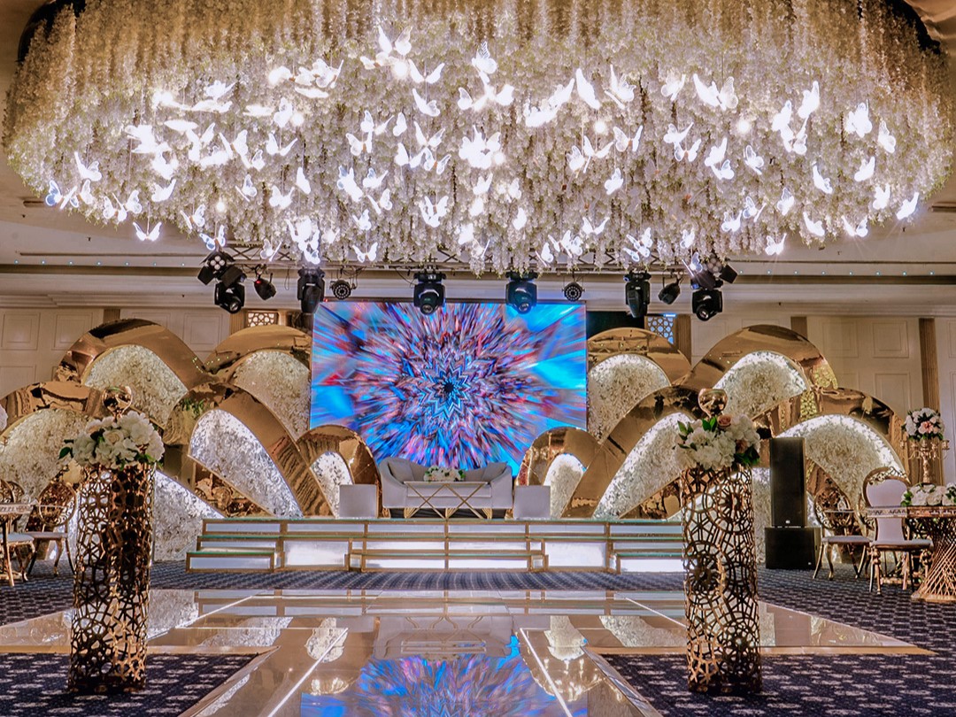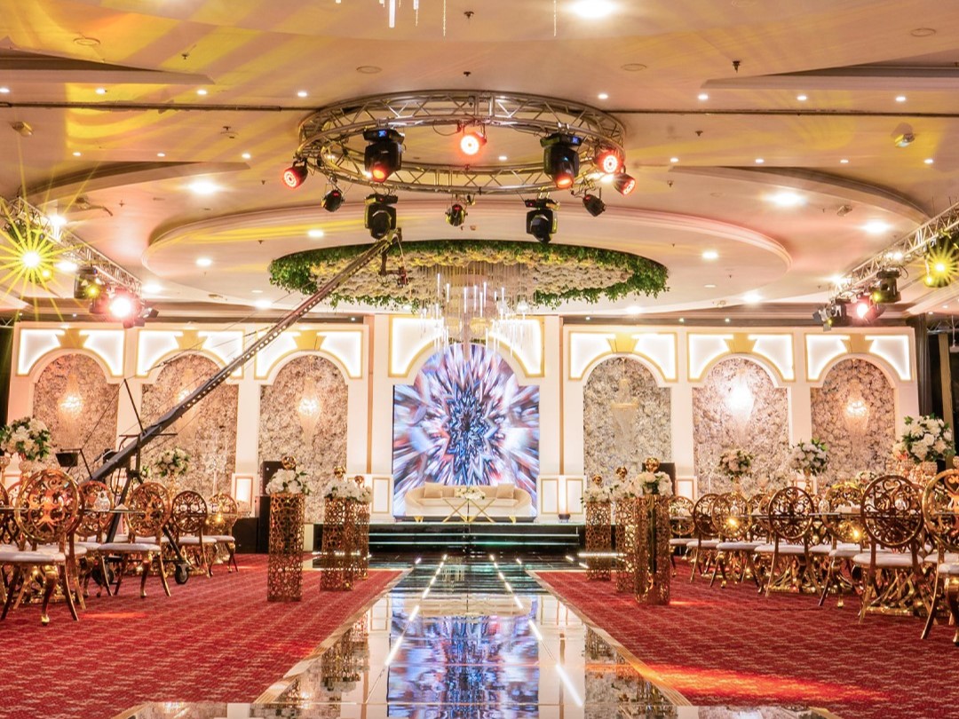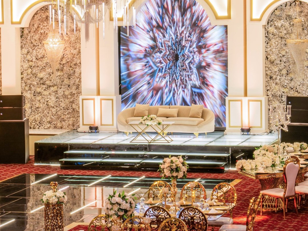 تم تصميم القاعة بأحدث أنظمة الإضاءة والصوت لتمنح أجواء راقية ومبهرة،