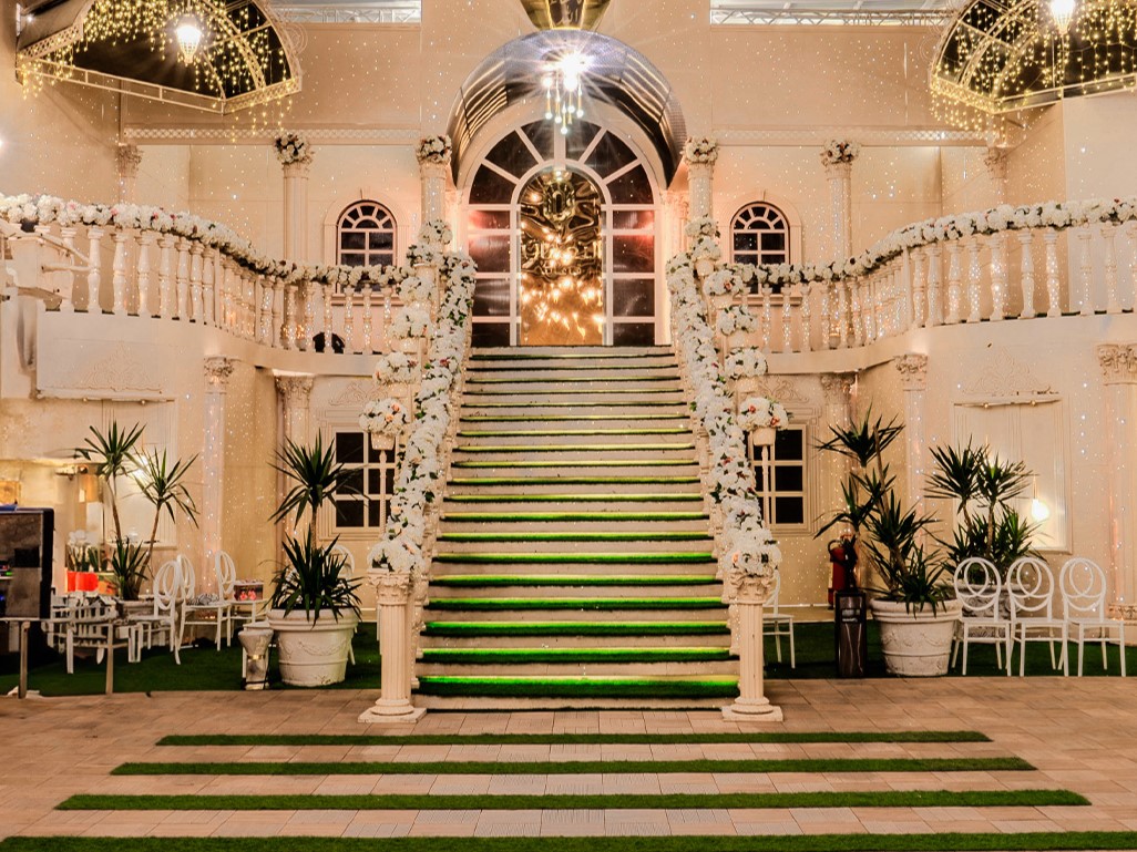 تتسع القاعة لما يصل إلى 500 شخص، مما يجعلها مثالية لحفلات الزفاف الكبرى،