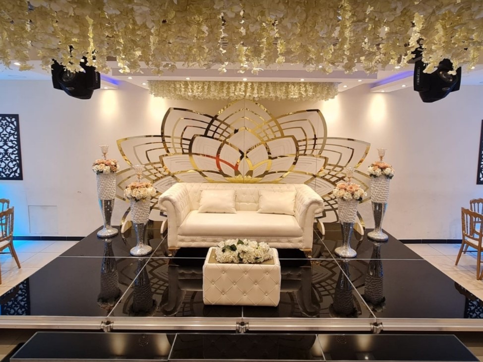 تم تصميم الصالة بعناية لتوفير أجواء راقية ومساحات رحبة قادرة على استيعاب مناسبات الزفاف والخطوبة بأفضل شكل ممكن.