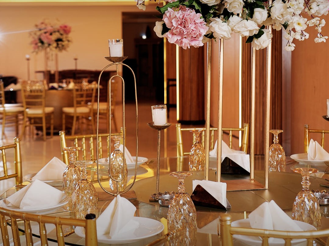 كل إعداد بالحفل مصمم ليخلق إحساس بالأناقة والجمال، ويحوّل الليلة لذكرى مشرقة بتبقى محفورة بذاكرة العروسين وضيوفهم.