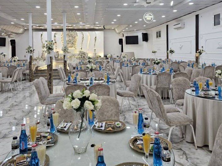 تتسع القاعة لاستقبال عدد كبير من الضيوف بكل راحة، وتوفر طاقم خدمة محترف يهتم بأدق التفاصيل من بداية الحفل حتى نهايته، لضمان تجربة مثالية تليق بكم وبضيوفكم.
