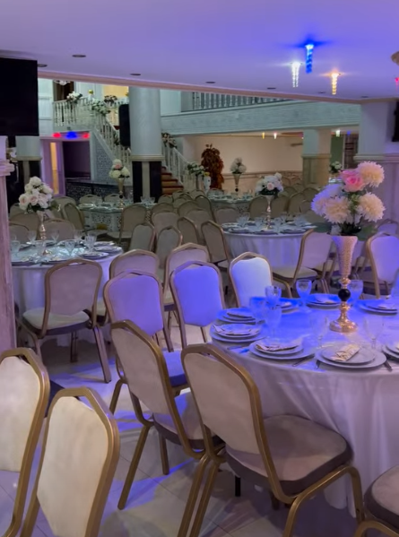 القاعة كبيرة وتتسع لما يصل إلى 400 ضيف، مجهزة بخدمات متكاملة تشمل تنظيم الطاولات والكراسي، تقديم الطعام والضيافة، ديكور مميز حسب رغبة العروسين، إضاءة احترافية، وطاقم عمل متخصص للإشراف على سير الحفل بكفاءة عالية.