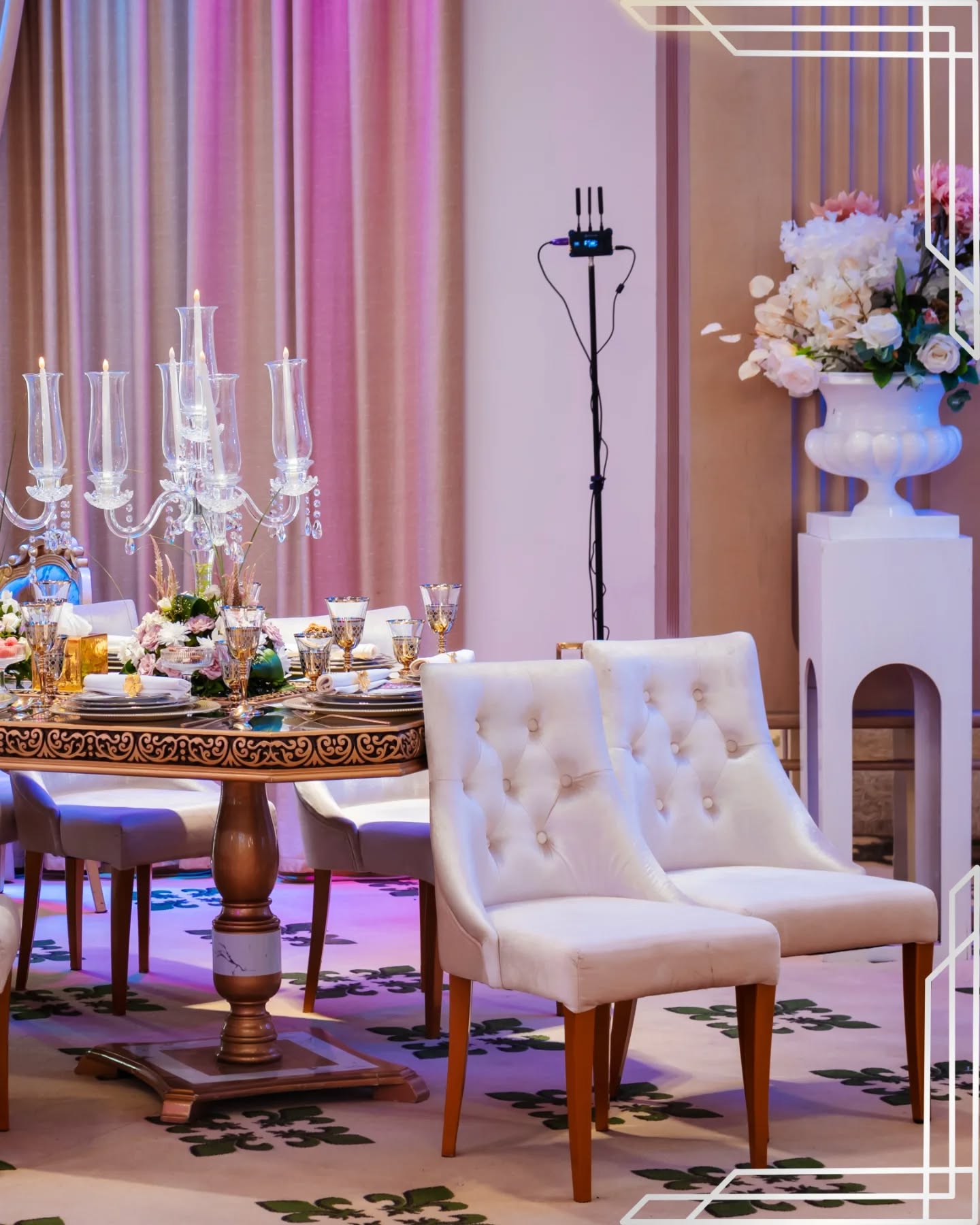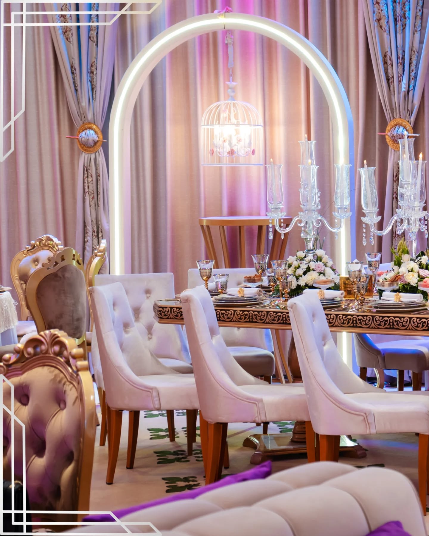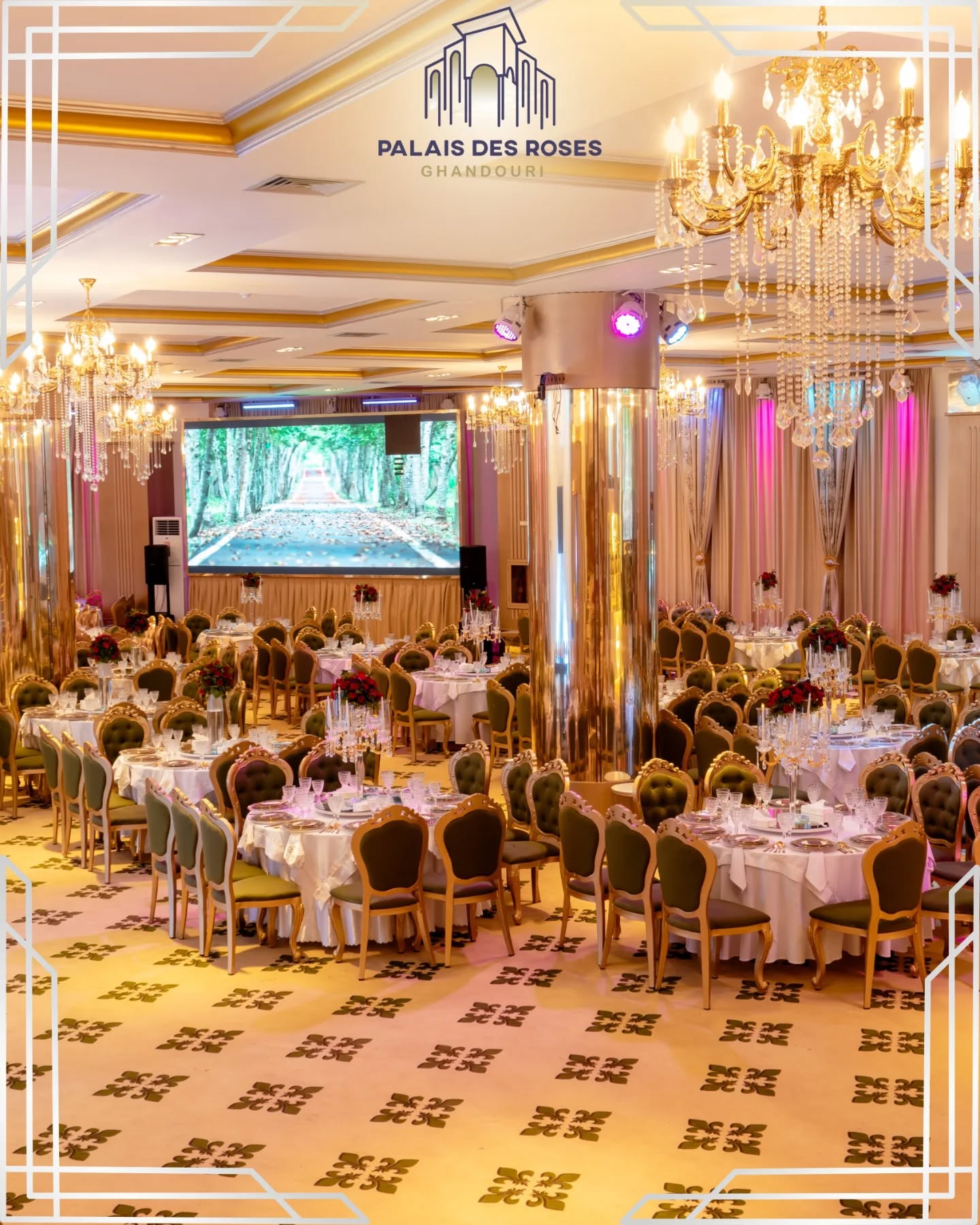قصر الورود فضاء أنيق وساحر، مصمم ليستقبل حفلات الزفاف، الخطوبة، كتب الكتاب وجميع المناسبات الخاصة في أجواء عصرية ومشرقة. القاعة كتتسع لـ 250 شخص، مع أجمل الديكورات الملكية التي تعكس الفخامة والرقي في كل تفصيل، من الأضواء المتلألئة إلى تنسيق الطاولات والكوشة الراقية.