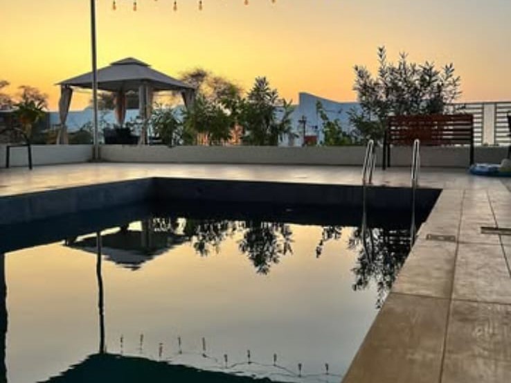 حوض سباحة للكبار بتصميم راقٍ يمنح تجربة سباحة فريدة.