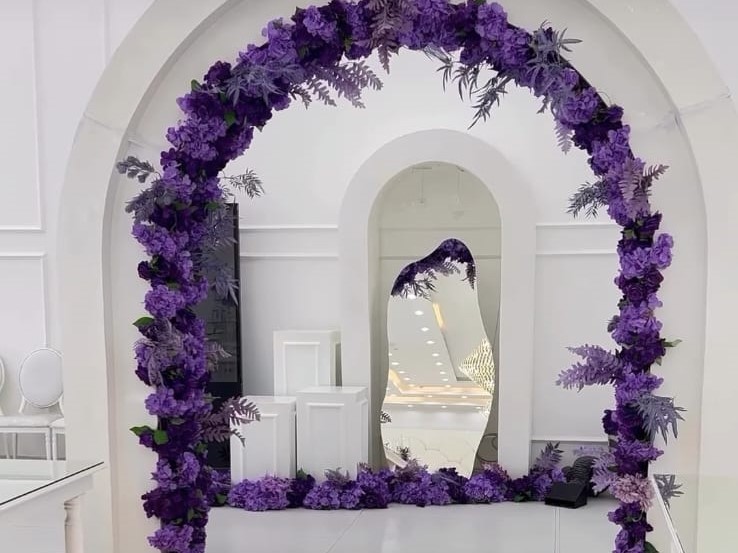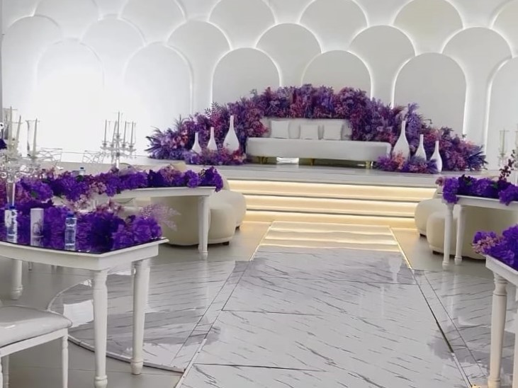 كوشة عروسين فاخرة ومزينة بأجمل الزهور