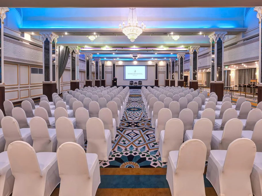 يُعتبر فندق إنتركونتيننتال مسقط تحفة معمارية تطل على جبال الحجر الشامخة، حيث يجمع بين الأصالة العمانية والرفاهية العالمية في قلب العاصمة. قاعة المؤتمرات ✔ 5 قاعات متعددة الأغراض للمؤتمرات والاجتماعات (25-100 شخصاً) ✔ فريق تنظيم حفلات محترف لضمان نجاح مناسبتك ✔ قوائم طعام متنوعة تتناسب مع جميع الأذواق ✔ مساحات فسيحة وتصاميم داخلية أنيقة