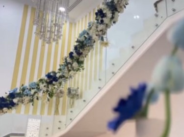 تتكون القاعة من طابقين فسيحين مجهزين بأحدث أنظمة الإضاءة والصوت، مع درج ملكي خاص لنزول العروس يضفي لمسة من السحر على لحظة دخولها. أما الديكورات، فهي مزيج من الثريات الكريستالية الفاخرة، والجدران المزخرفة، والأرضيات الرخامية اللامعة التي تعكس جمال المناسبة وروعتها.