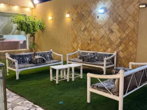 بمساحة 350 متر، مجهز بمسبح خاص ومساحات جلوس داخلية وخارجية. يوفر تجربة تجمع بين الفخامة والراحة مع تجهيزات متكاملة تناسب كل المناسبات.