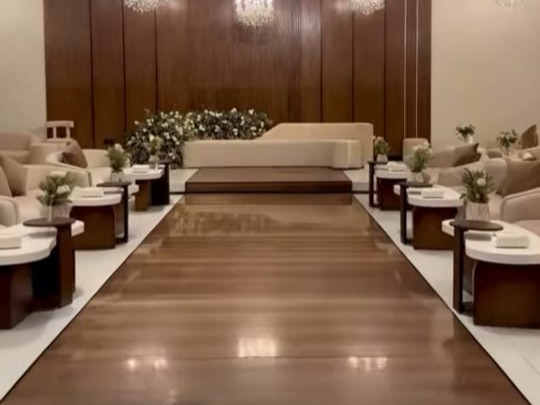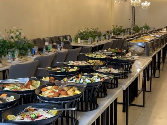 ما نقصر معاك في الخدمة, عندنا مشرف قاعة وقهوجي ومشرف عبايات وأربع مضيفات، وكل ما يلزم الضيافة من شاي وقهوة وورد ومباخر
