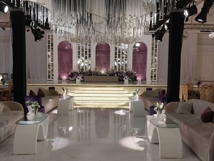 الأجواء داخل القاعة تتميز بديكورات فخمة تتناغم مع الإضاءة والتقسيم الداخلي لتخلق بيئة راقية ومناسبة لكل أنواع المناسبات. كل زاوية من القاعة تم تنسيقها بعناية لتمنح الضيوف شعورًا بالرفاهية والتميز.