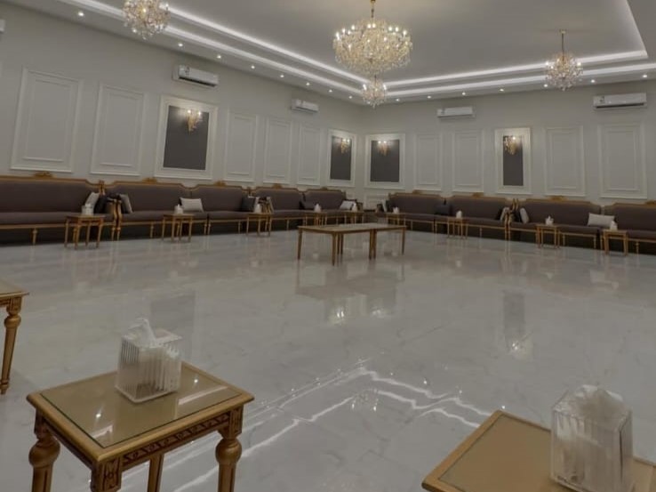 قاعة الرجال بطابع ملكي يجمع بين الفخامة والراحة.