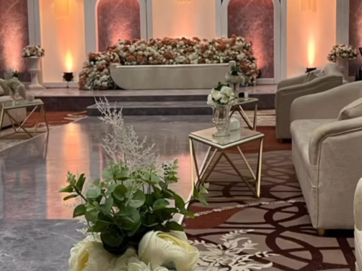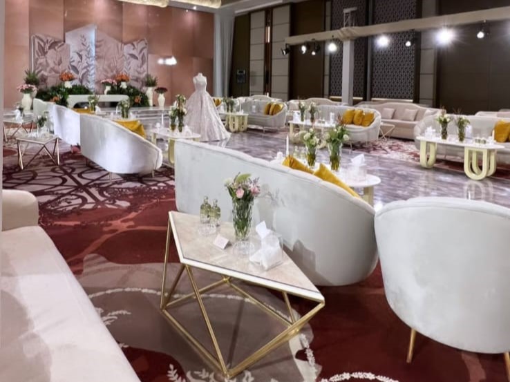القاعة تتسع لـ 180 ضيف مع مساحة خارجية للطعام تسع 260 شخص، بالإضافة لغرف خاصة لتجهيز العروس ومدخل مستقل يضمن خصوصيتها.